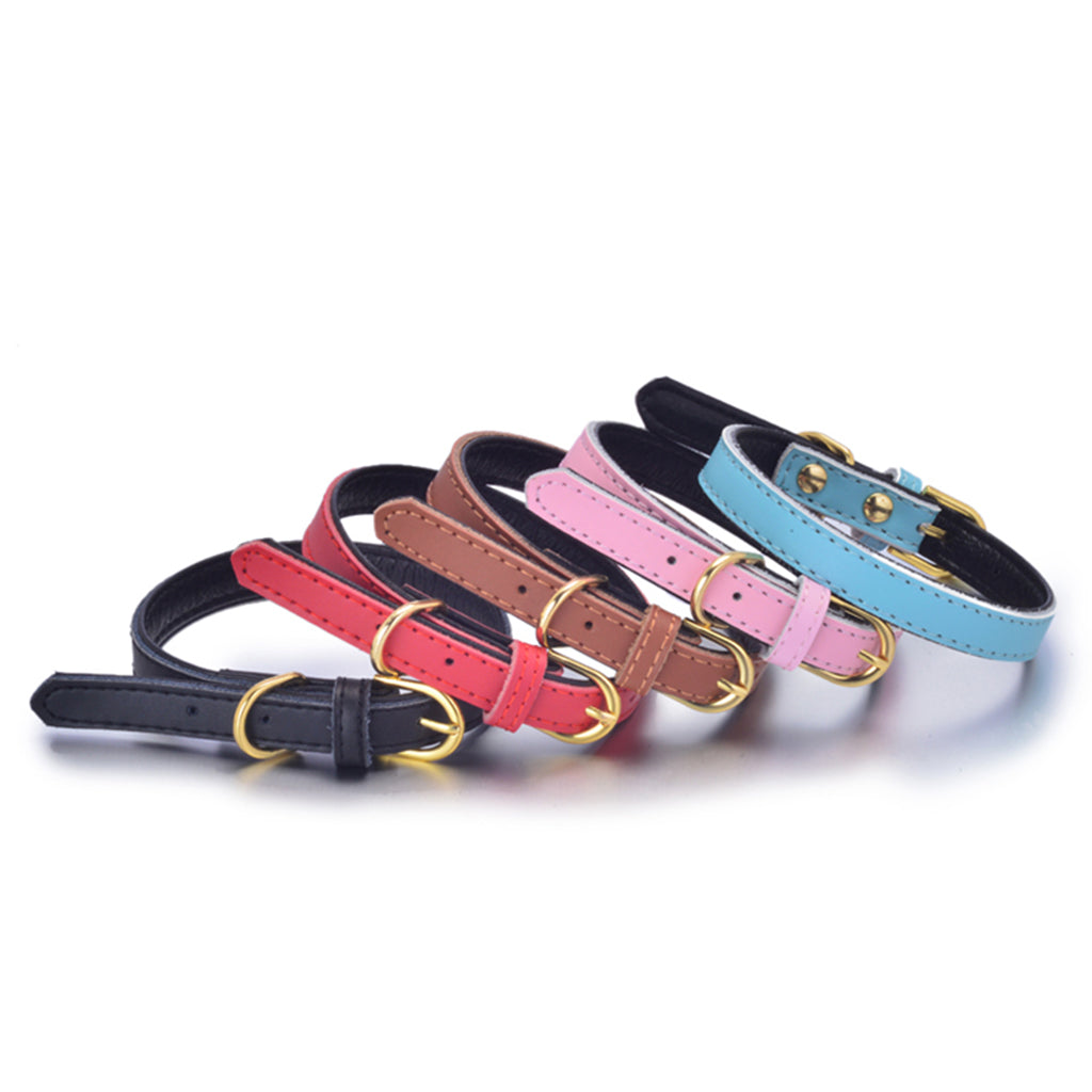 Adjustable PU Leather Pet Puppy Dog Collar Safety Neck Buckle Strap S Red