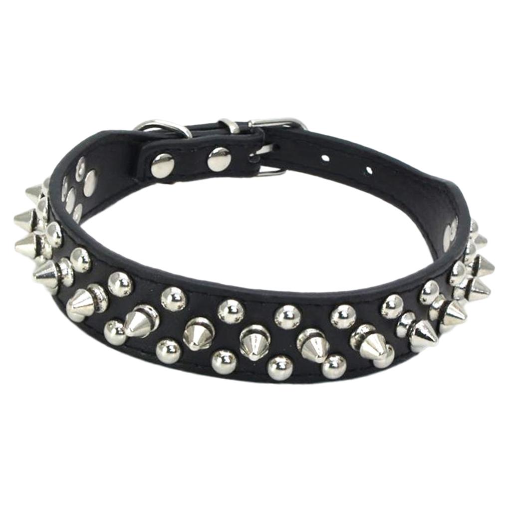 Adjustable PU Leather Rivet Pet Collar Puppy Dog Collar Neck Strap Black_S