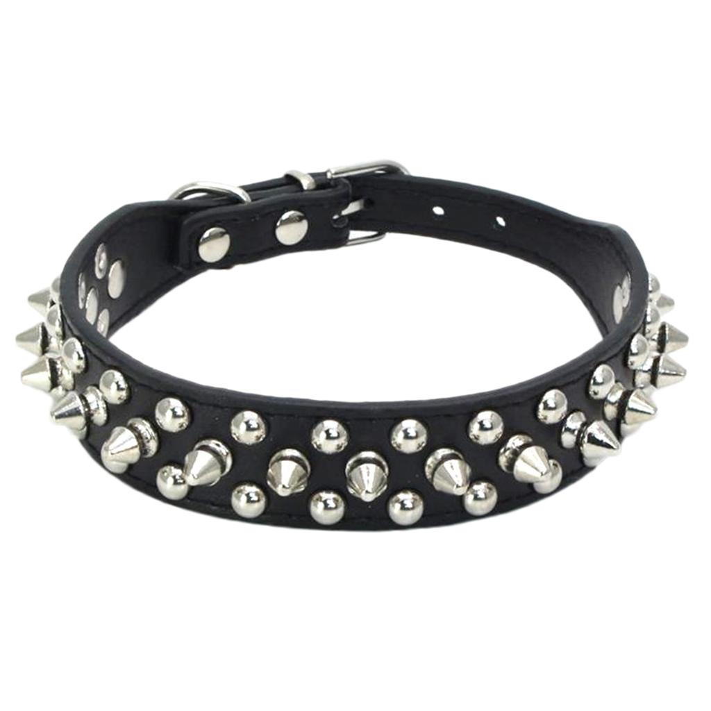 Adjustable PU Leather Rivet Pet Collar Puppy Dog Collar Neck Strap Black_XS
