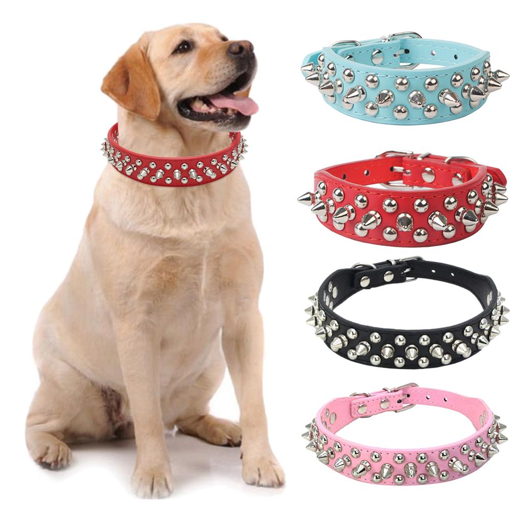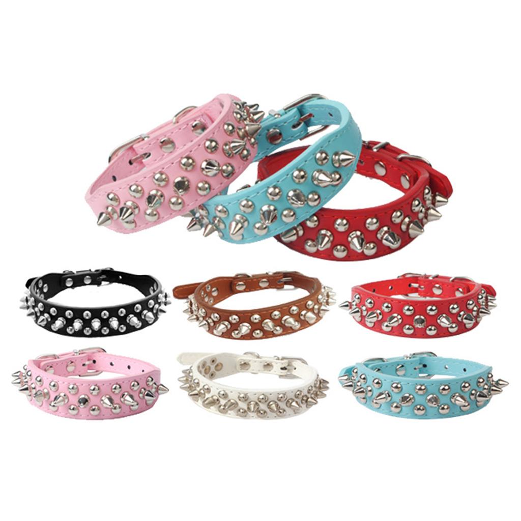 Adjustable PU Leather Rivet Pet Collar Puppy Dog Collar Neck Strap Blue_XL