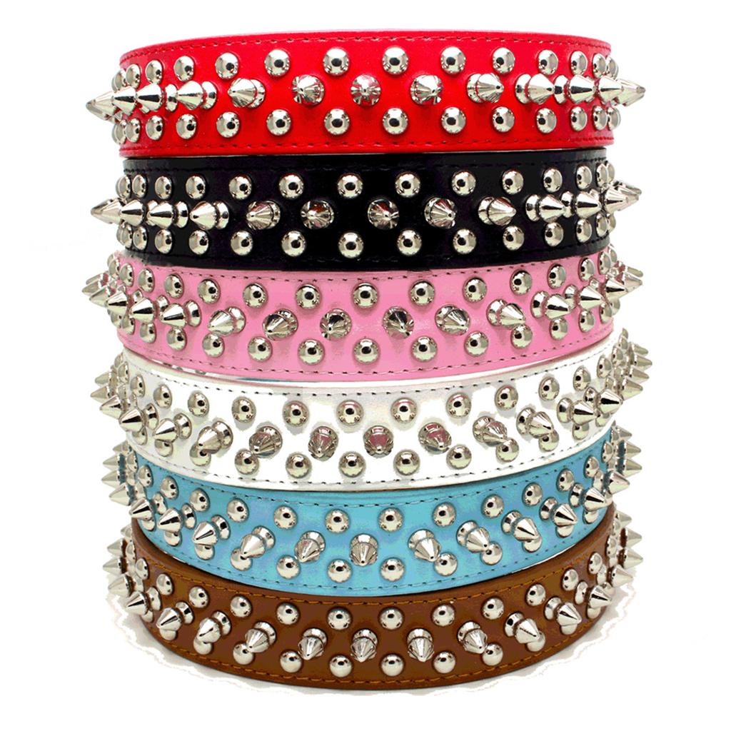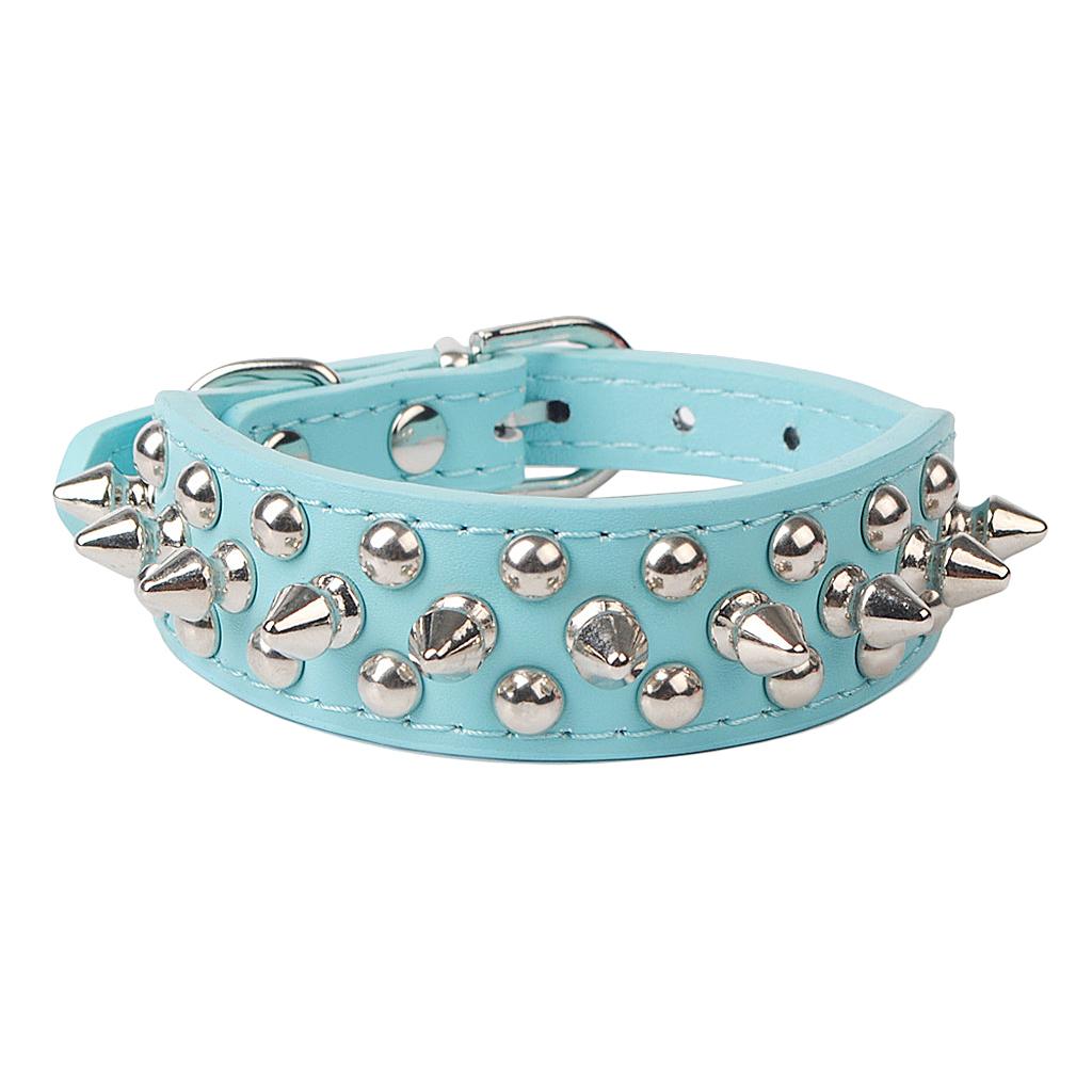 Adjustable safety dog collar with charming rivets .