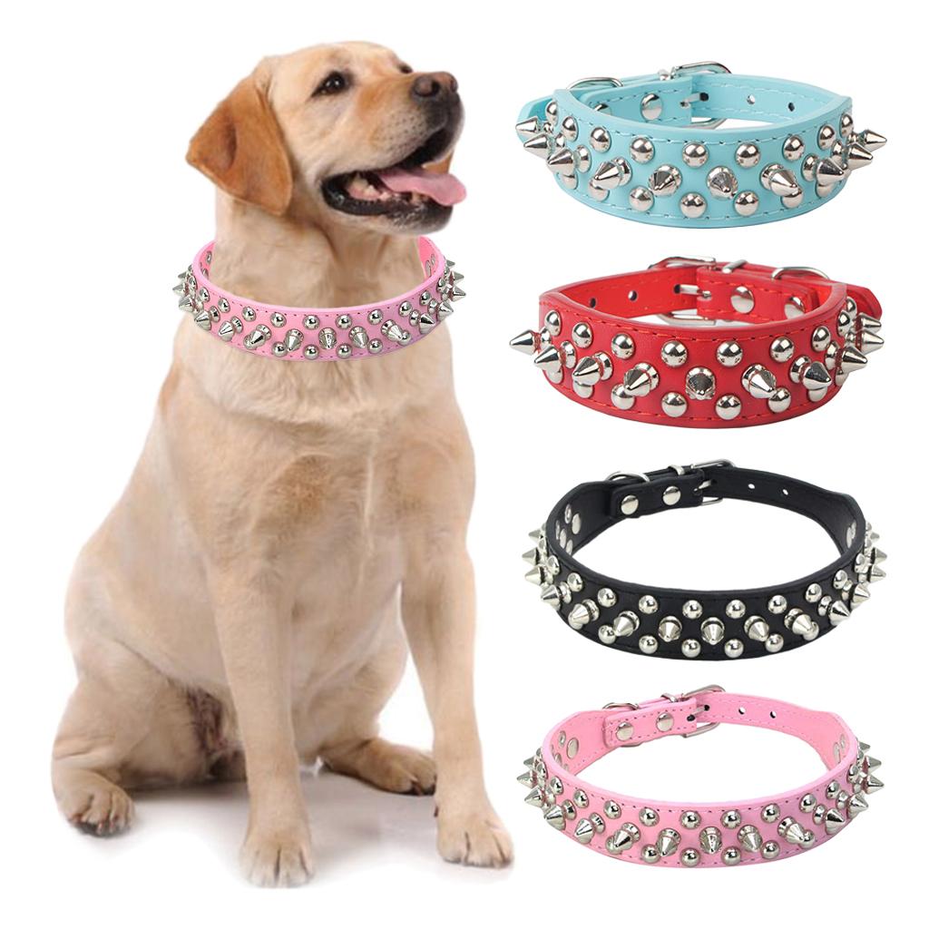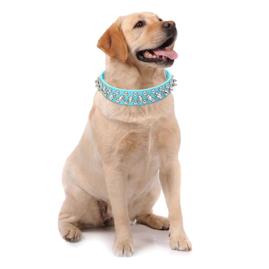 Adjustable PU Leather Rivet Pet Collar Puppy Dog Collar Neck Strap Blue_XXS