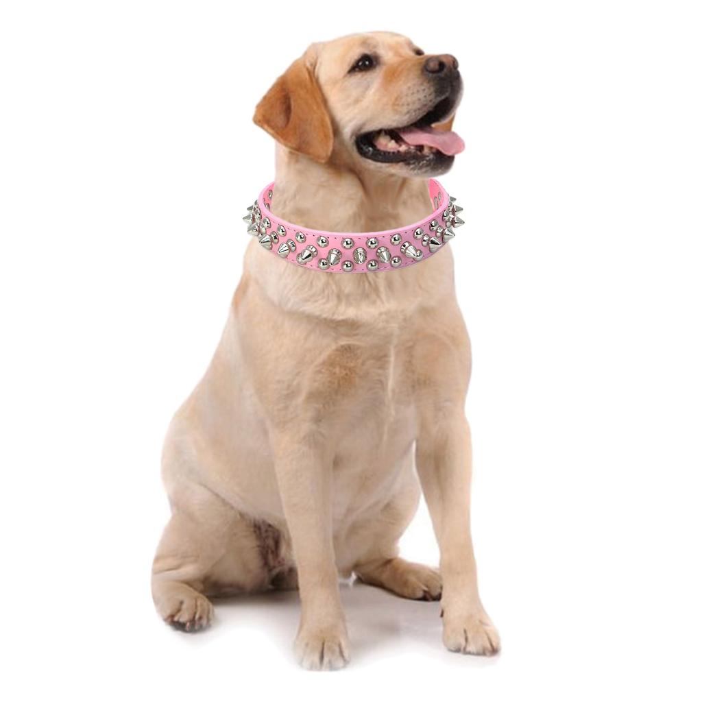 Adjustable safety dog collar with charming rivets .