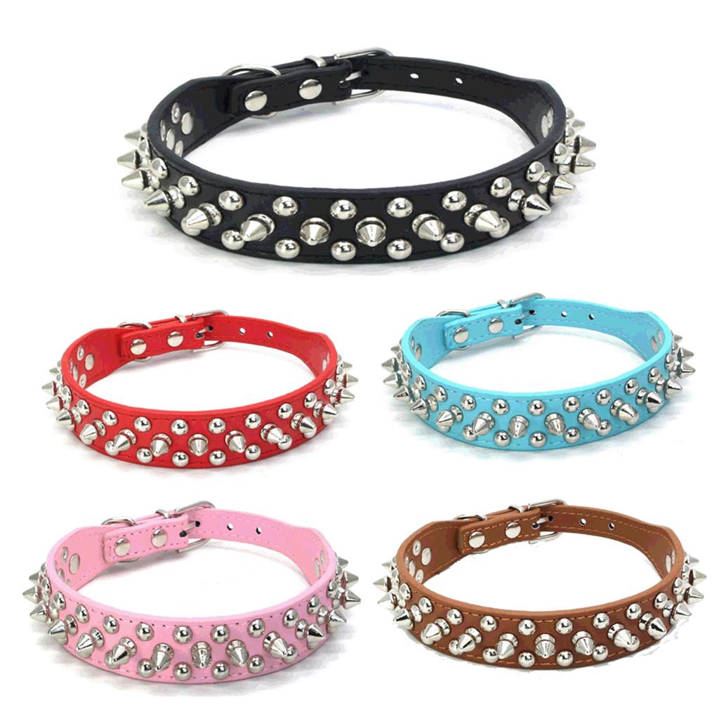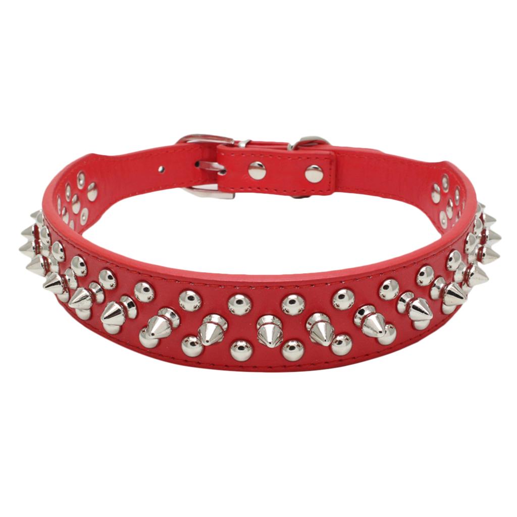 Adjustable PU Leather Rivet Pet Collar Puppy Dog Collar Neck Strap Red_XS