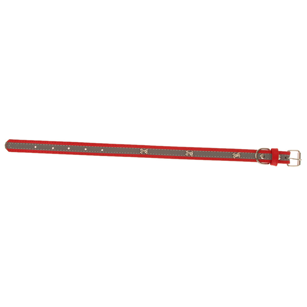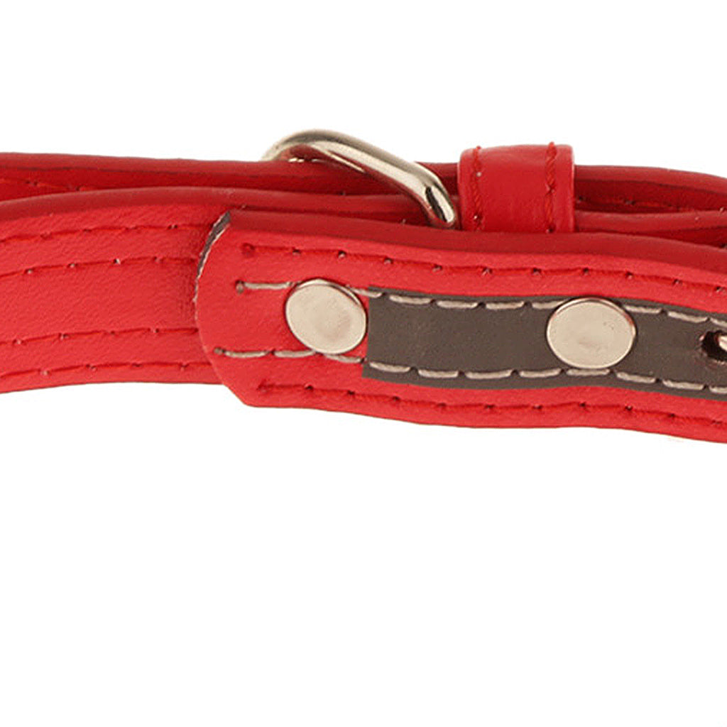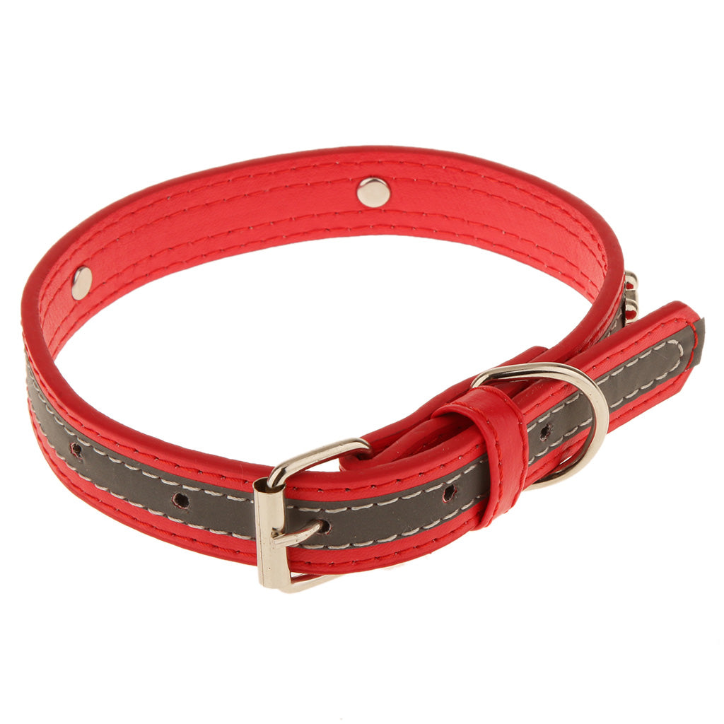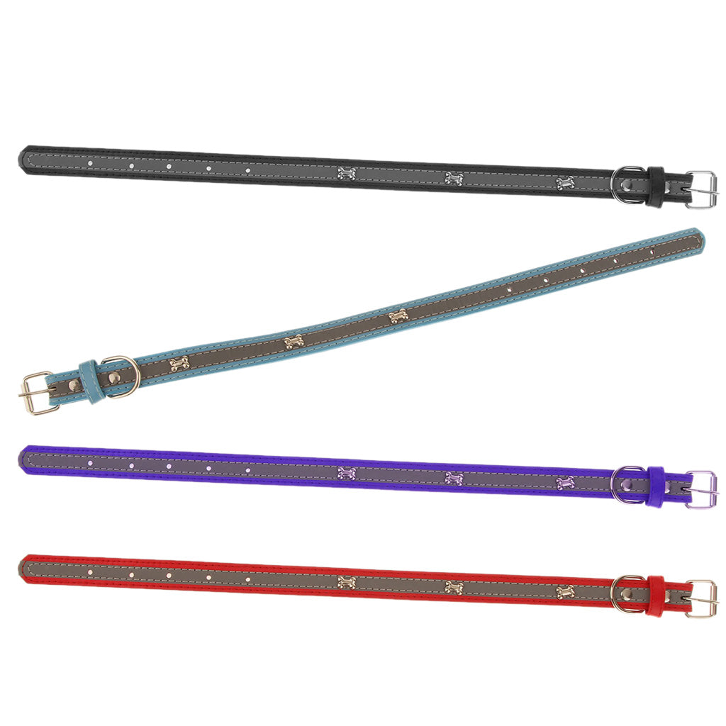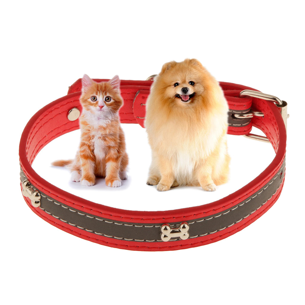 Adjustable Puppy PU Leather Bone Reflective Safety Buckle Dog Collar-Red