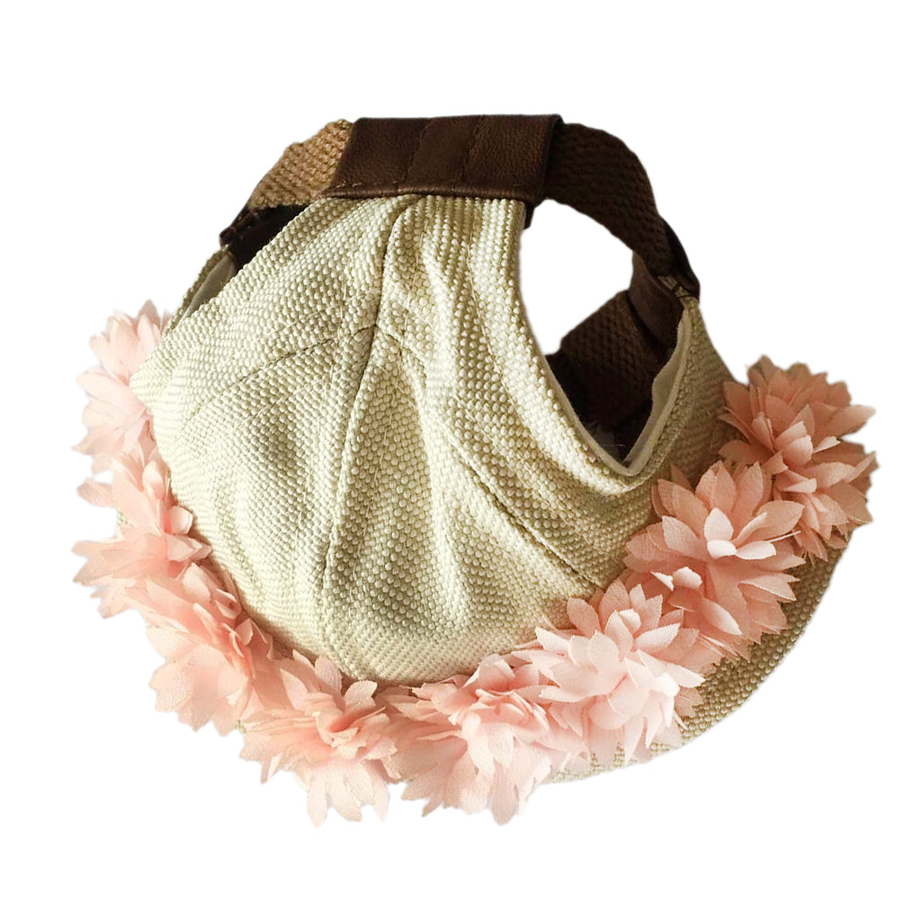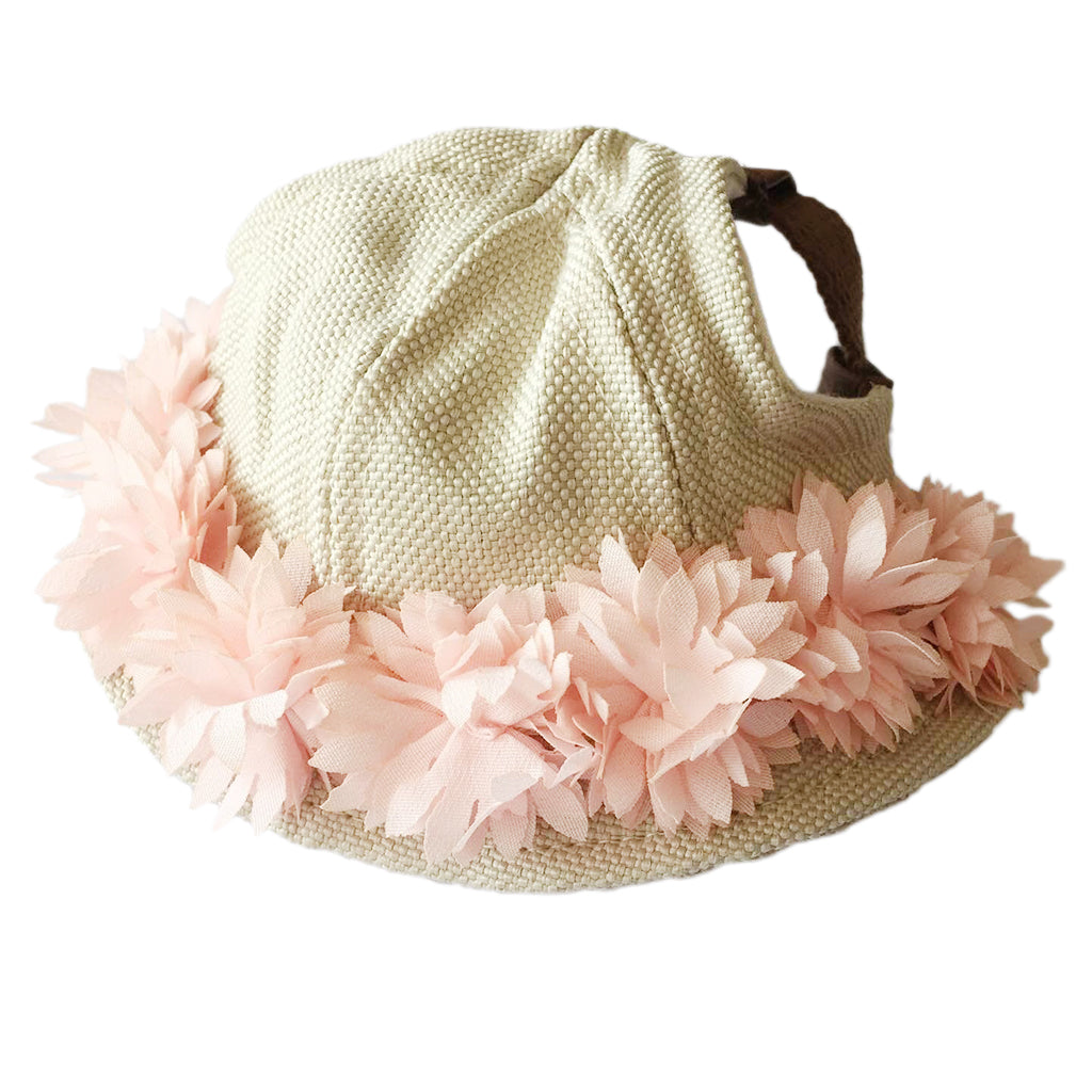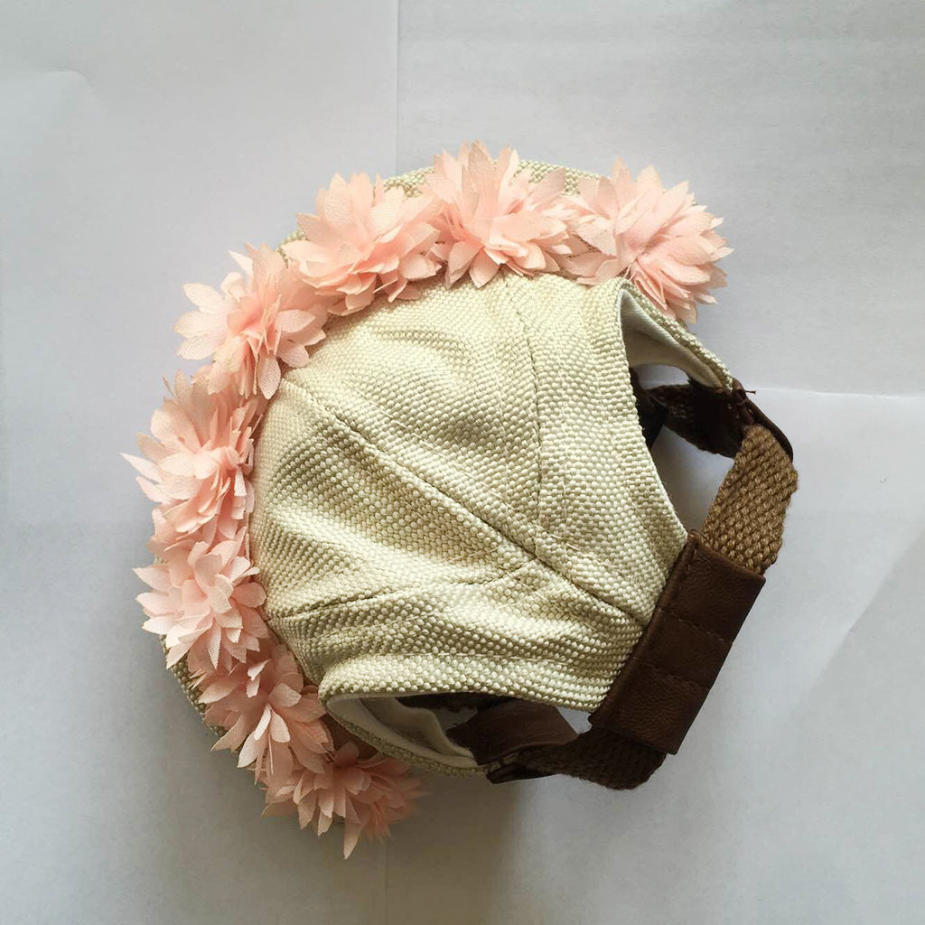 Adjustable Round Pet Hat Dog Puppy Cap Bucket Hat Sunbonnet S Pink Flowers