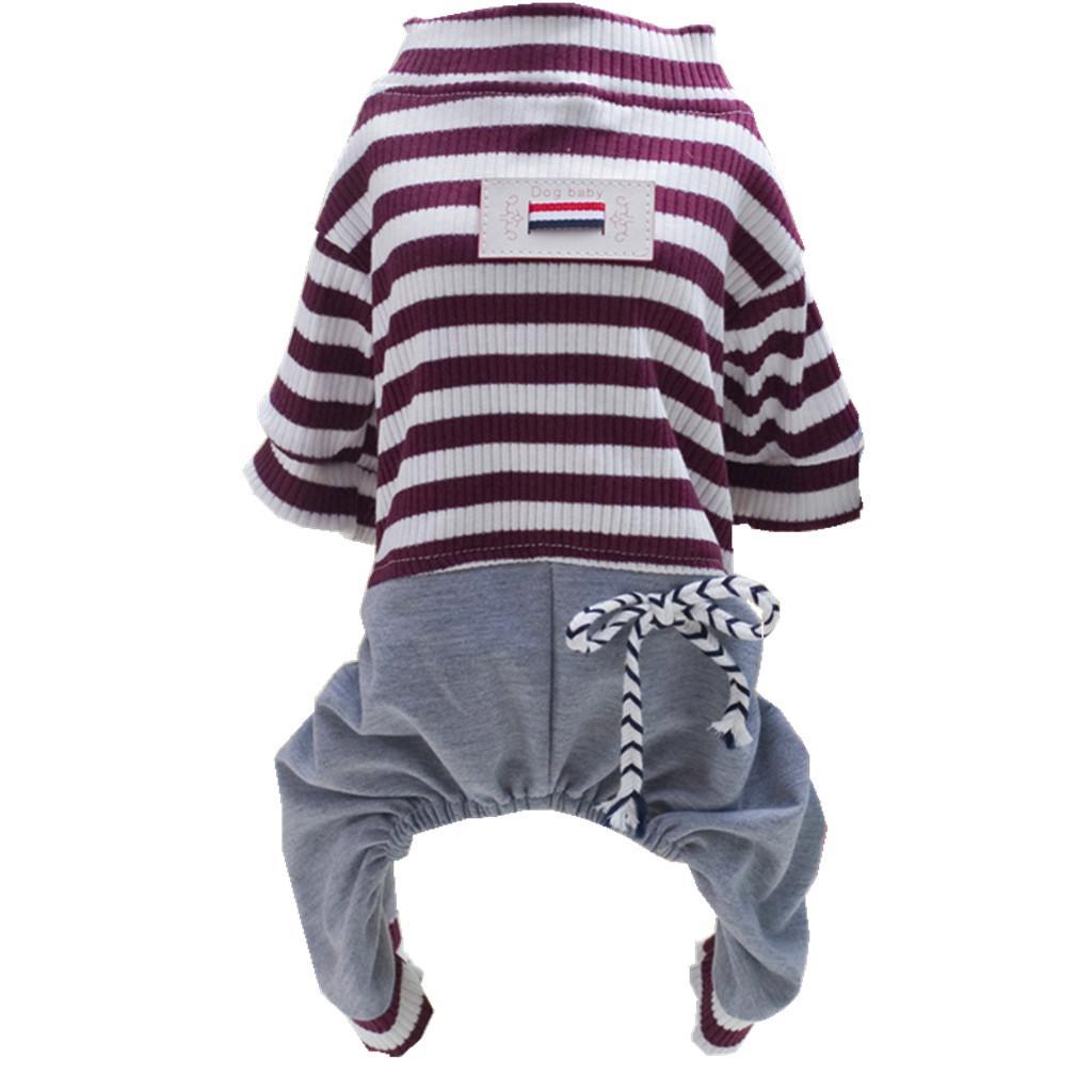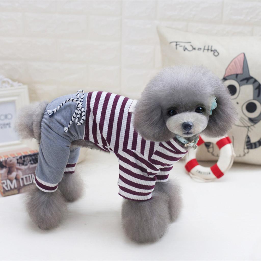 Adorable Puppy Jumpsuit Teddy Pantsuit Dog Stripes Clothes 100% Cotton L