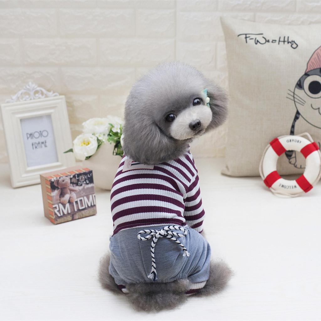 Adorable Puppy Jumpsuit Teddy Pantsuit Dog Stripes Clothes 100% Cotton S