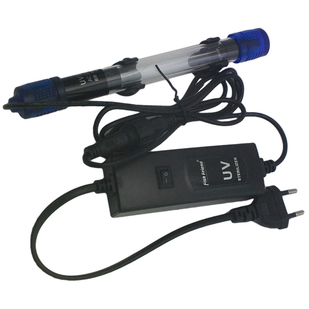 Placed the UV lamp within the filter system, let filtering water flow past the sterilization lamp