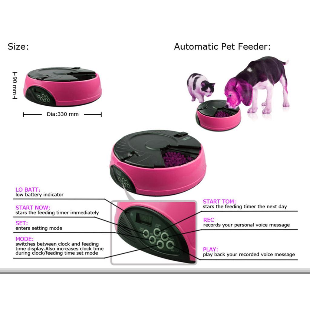 Automatic Electronic Pet Feeder can feed your pet according to the time and quantity you preset. Programmable up to 6 meals per day. Great for cats and small & medium size dogs.