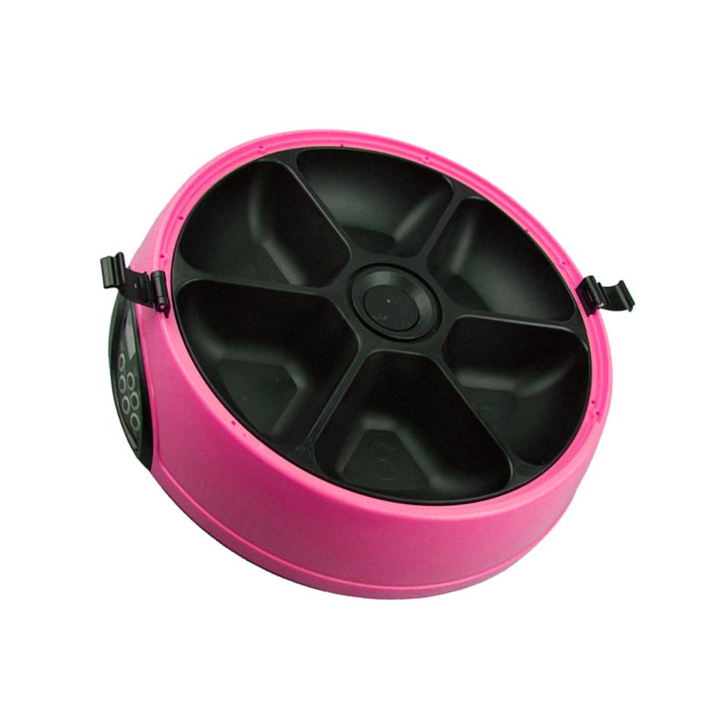 6 compartments (6 x 150g) for use with dry, packaged moist and wet food (or even Treats & Medication). Removable cover and food tray, easy to clean (dishwasher safe). It also has built-in water sink, can solve the problem that pets drinking water.