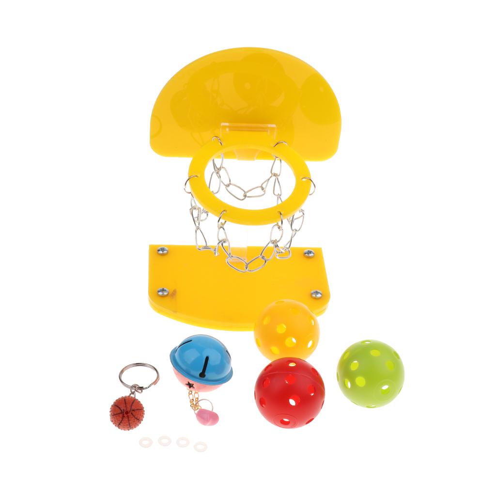 Come with plastic mini basketball basket and 5 Ball, educational toy for the parrot, can develop the intelligence.