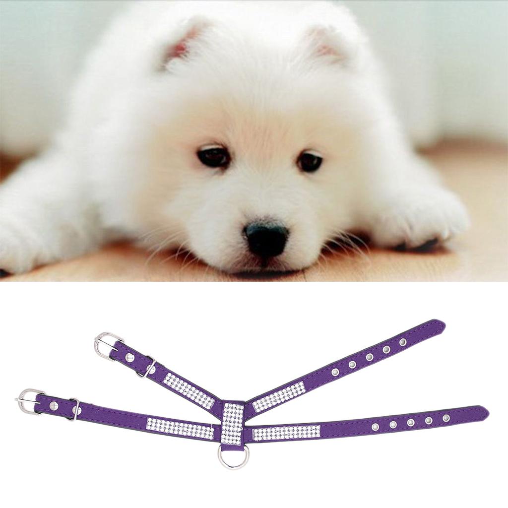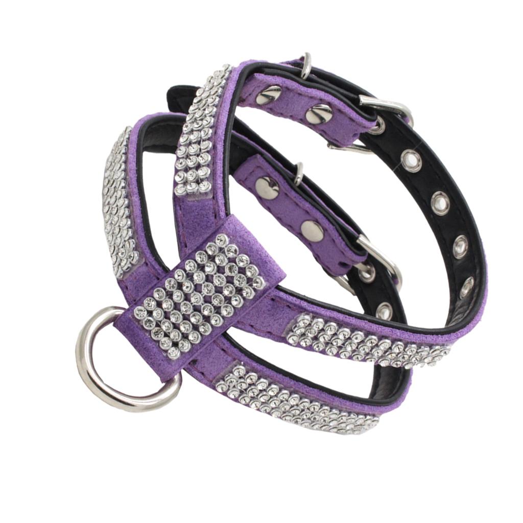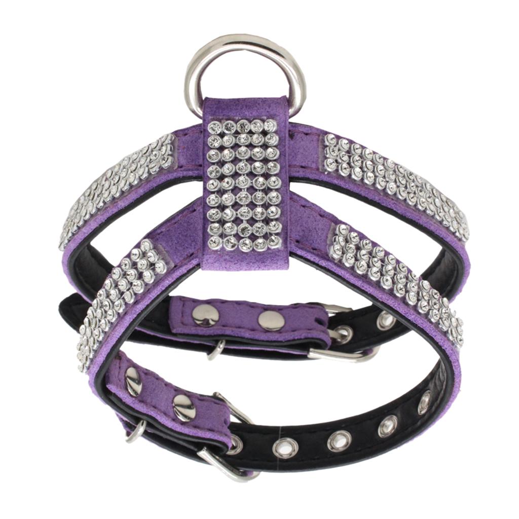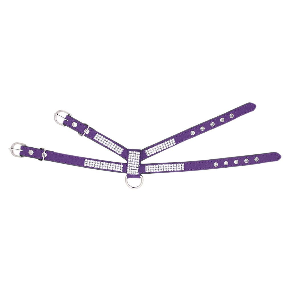 Bling Diamond Crystal Collar Pet Cat Dog Harness Chest Strap Lead Purple L
