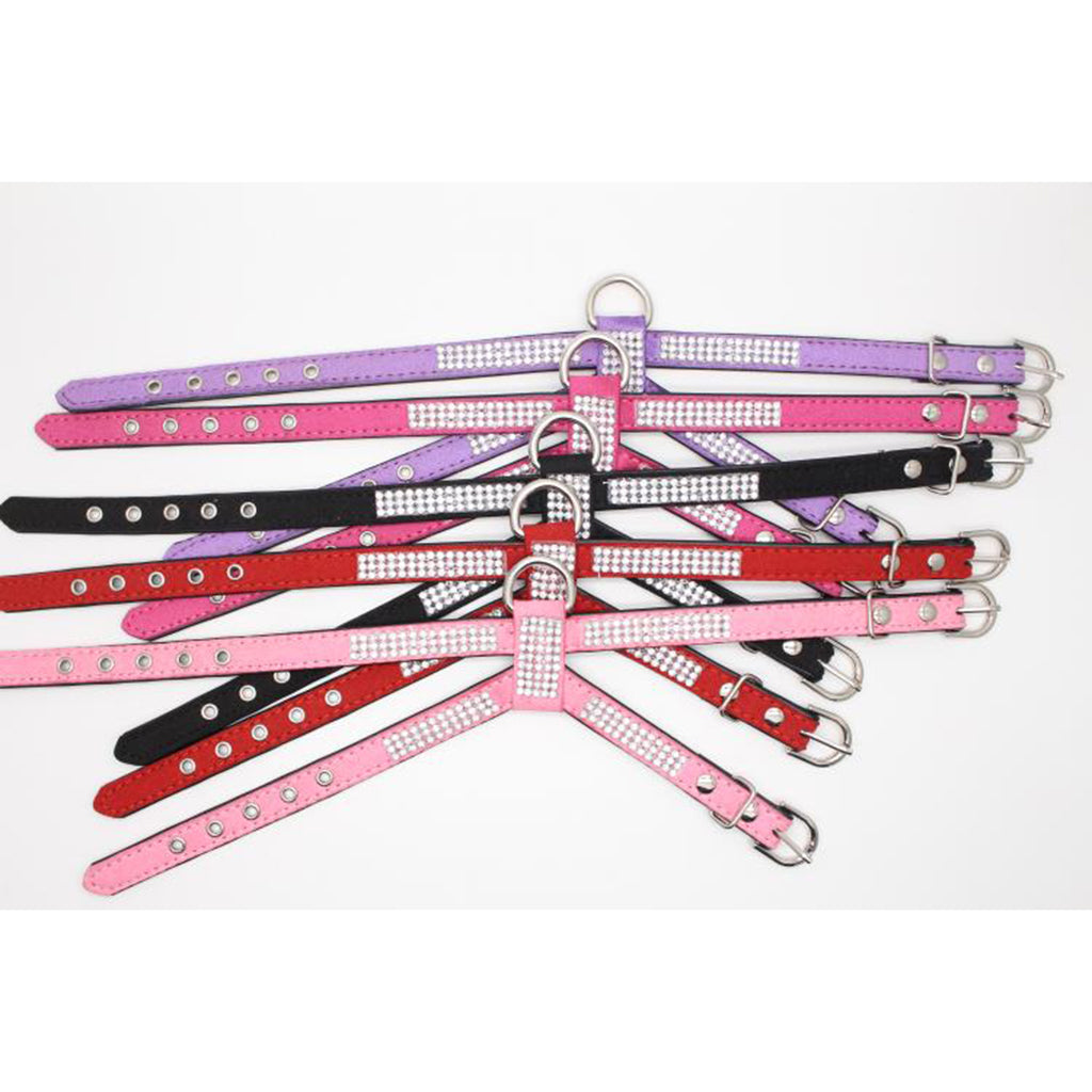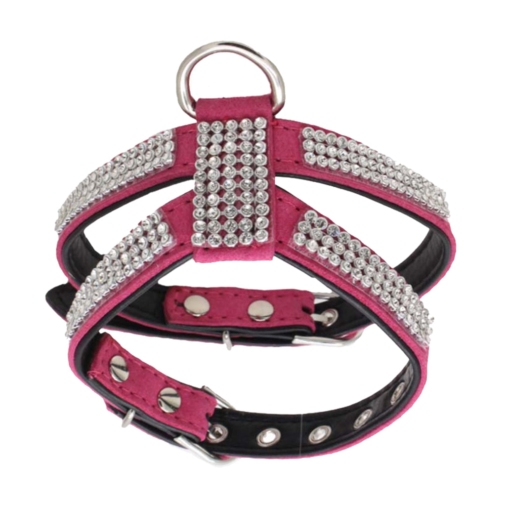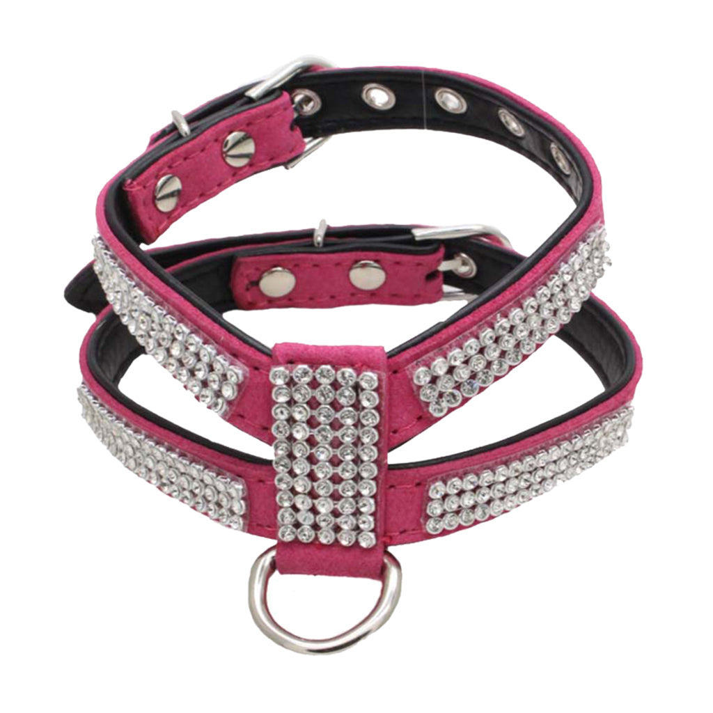 Bling Diamond Crystal Collar Pet Cat Dog Harness Chest Strap Lead Rose Red M