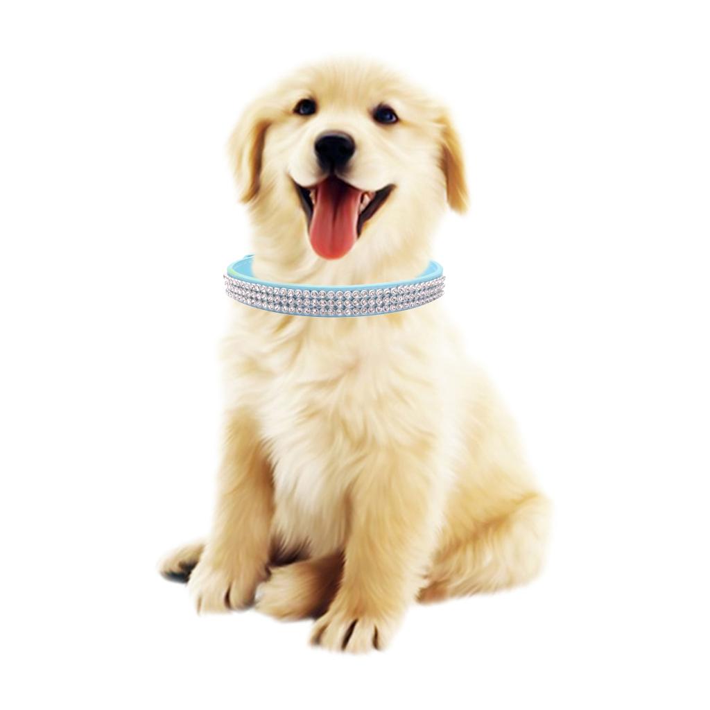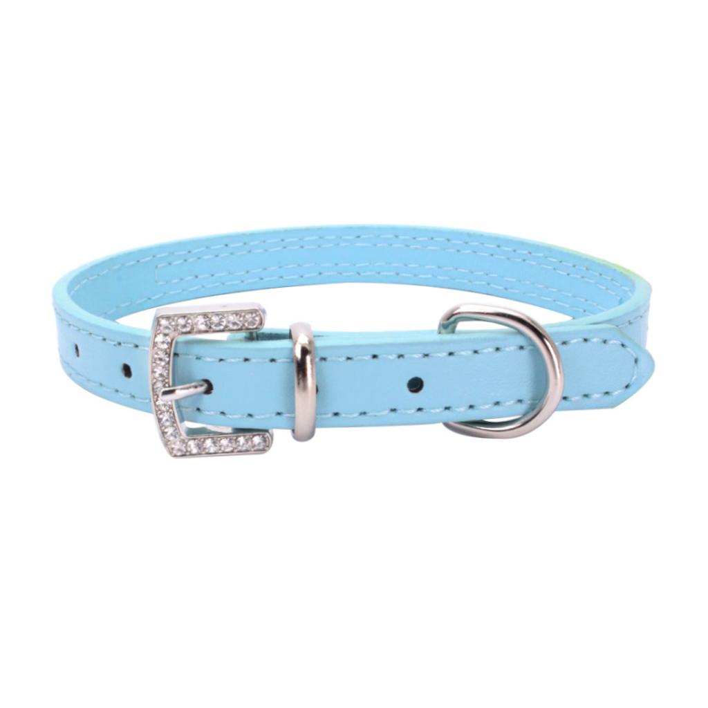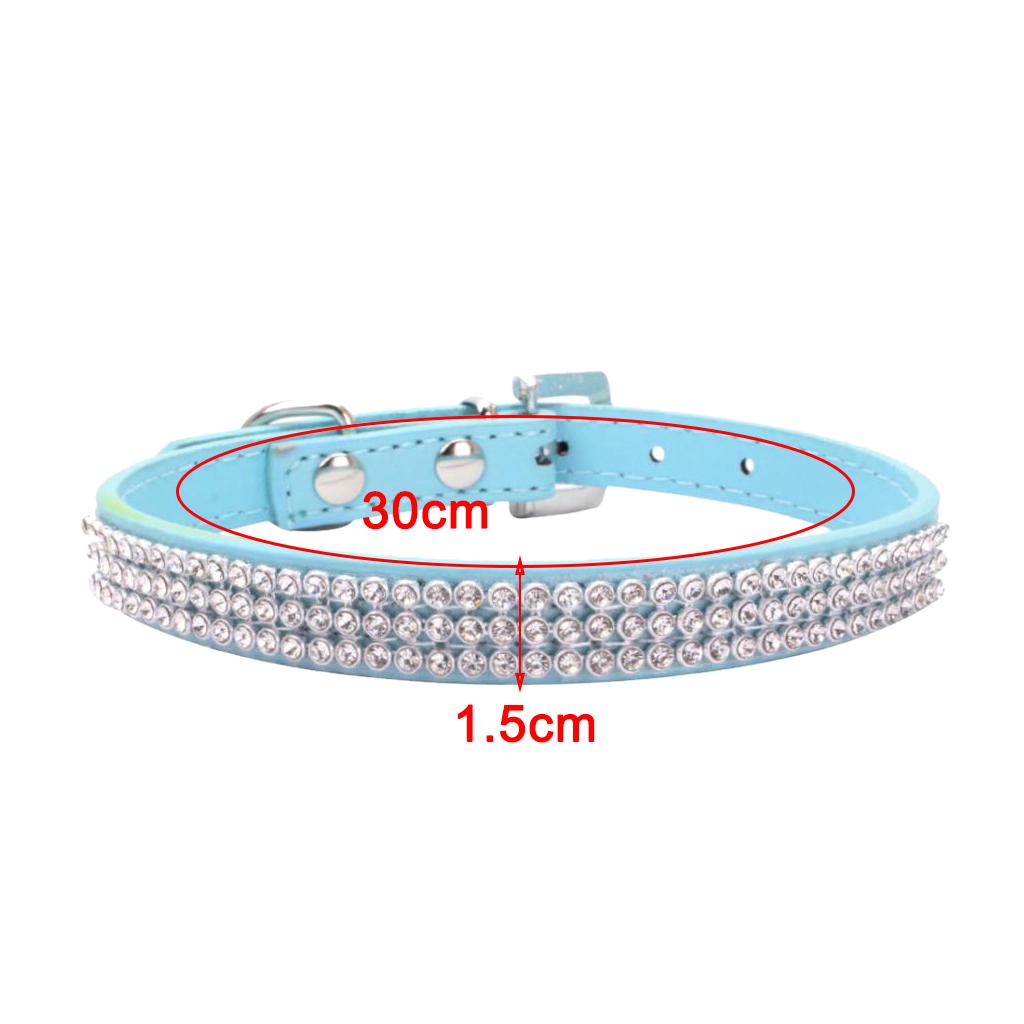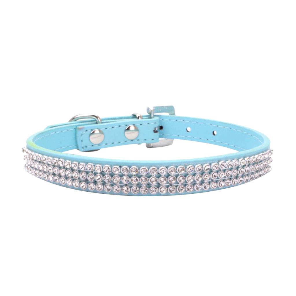 Bling Rhinestone Leather Crystal Diamond Pet Dog Collars Light Blue XS