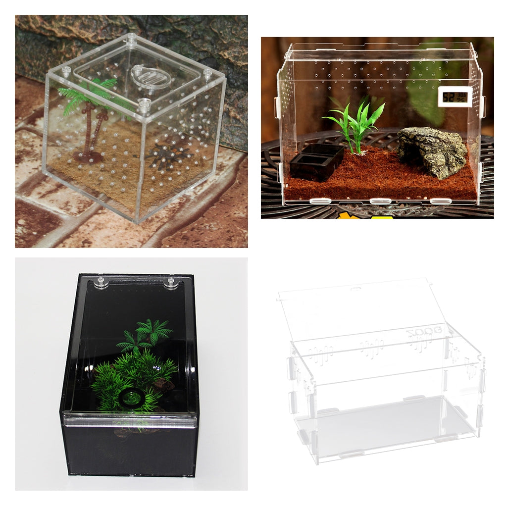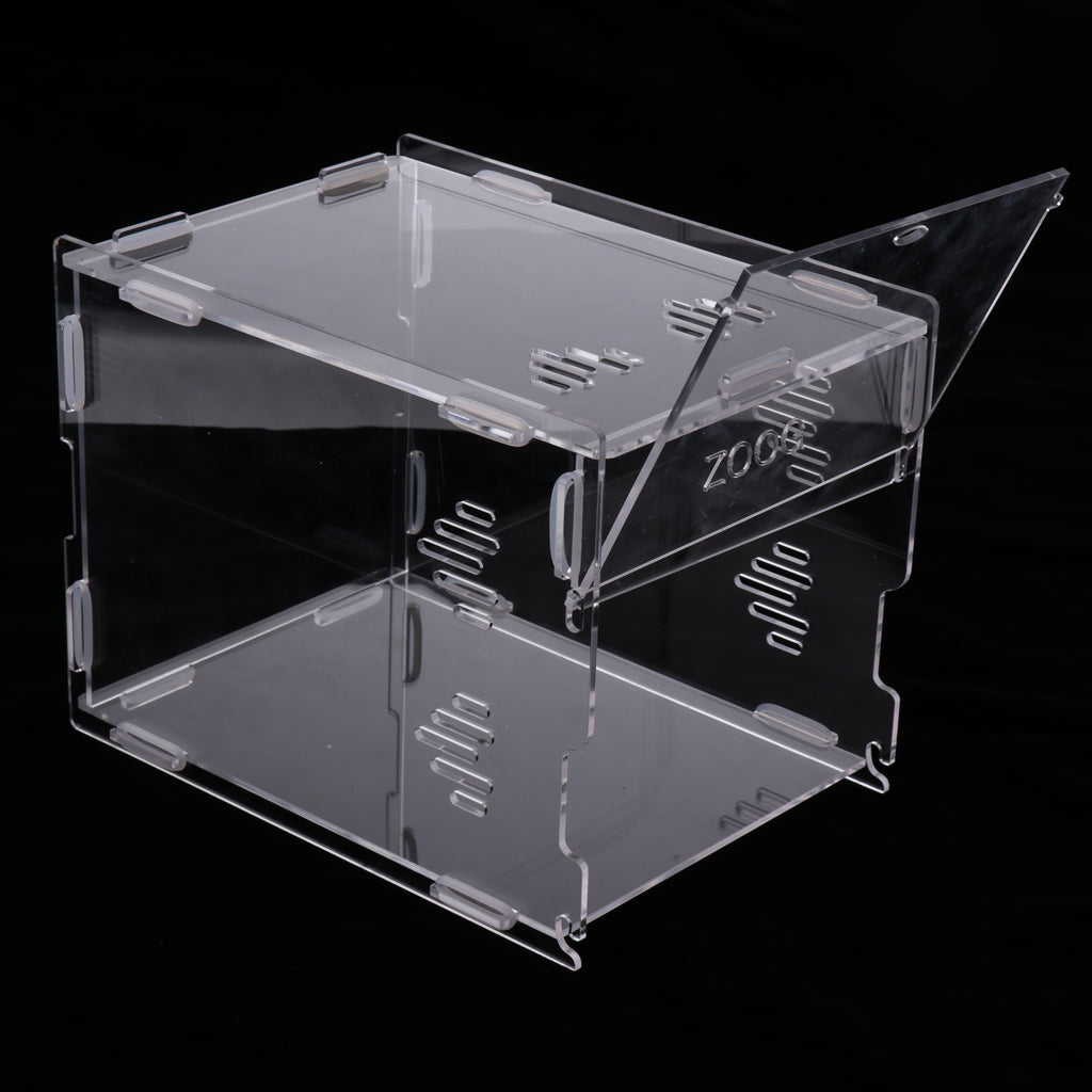 Clear Acrylic Box Pet Reptile Transport Breeding Feeding Case 17x17x22cm