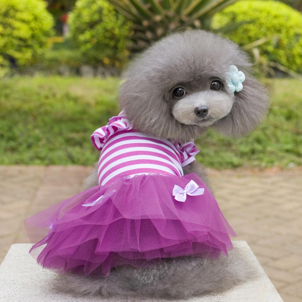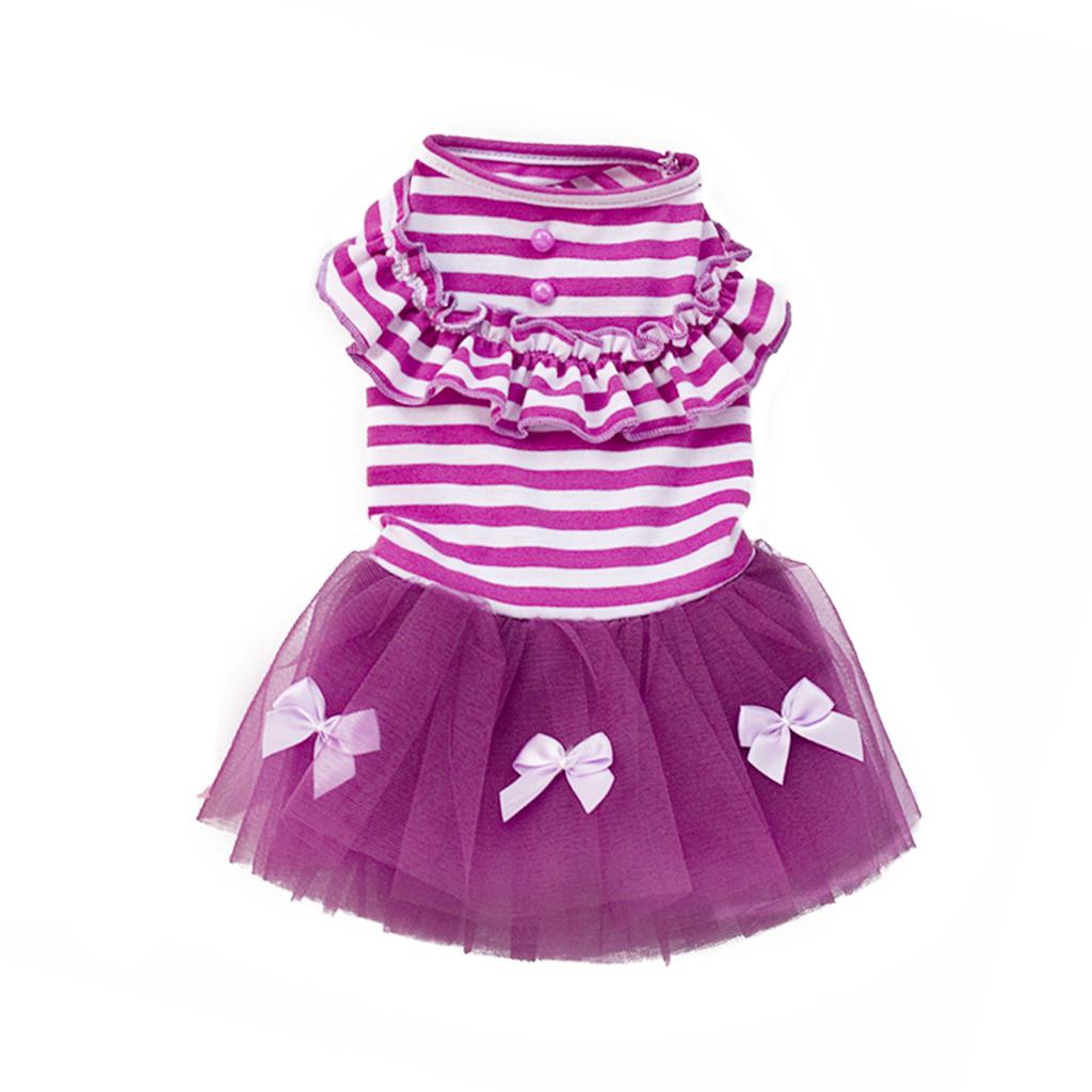 Cute Small Puppy Pet Dog Stripe Bow Lace Skirt Princess Dress Purple--XL