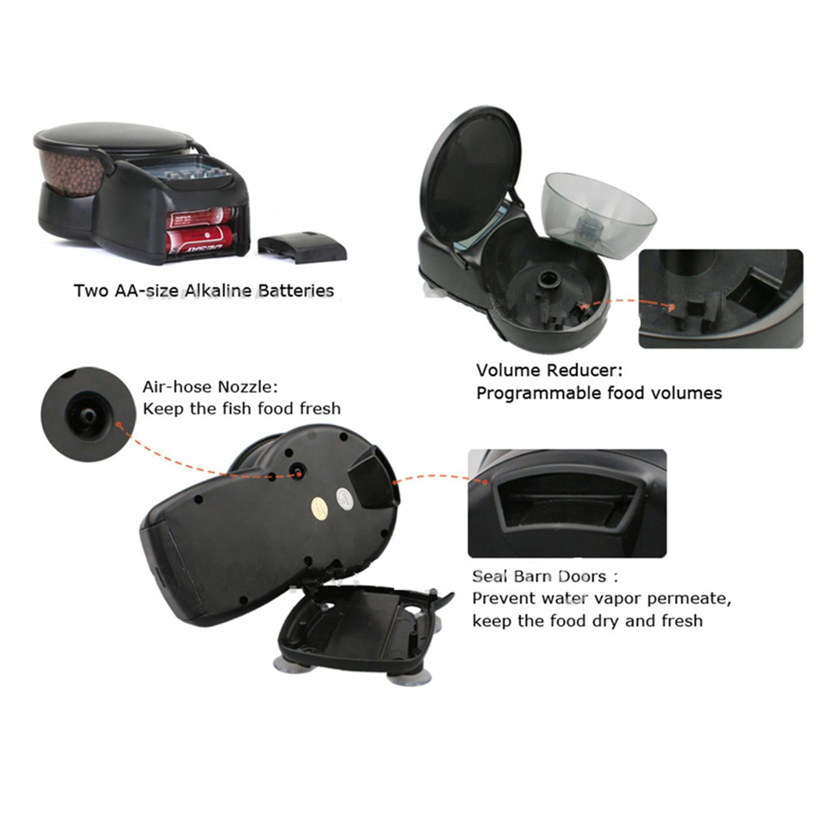 With a unique design of fish food distribution and anti-cogging system, it can keep the fish food from leaking. Sealed fish grain door can effectively prevent water vapor infiltration, keep the fish food dry.