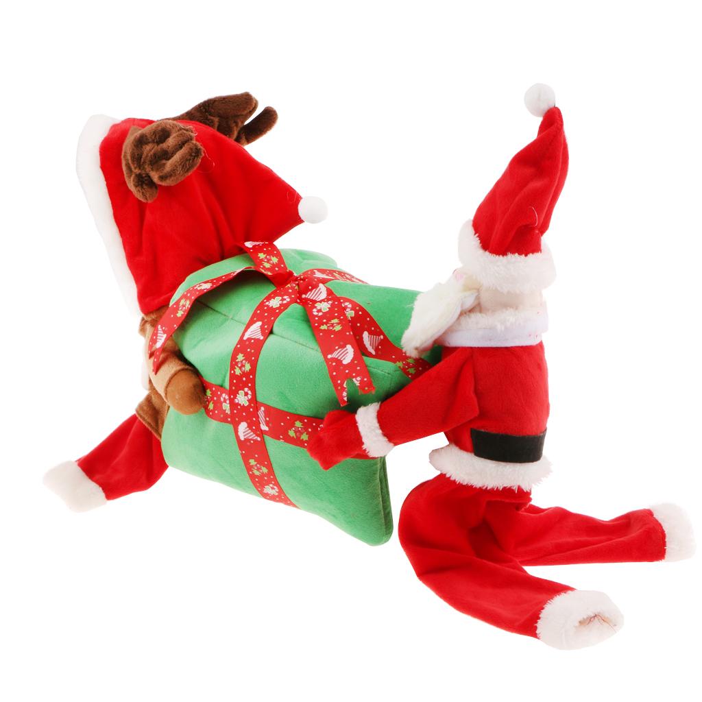 Cute dog christmas deer roles play costume, working with santa to give gifts, very funny;