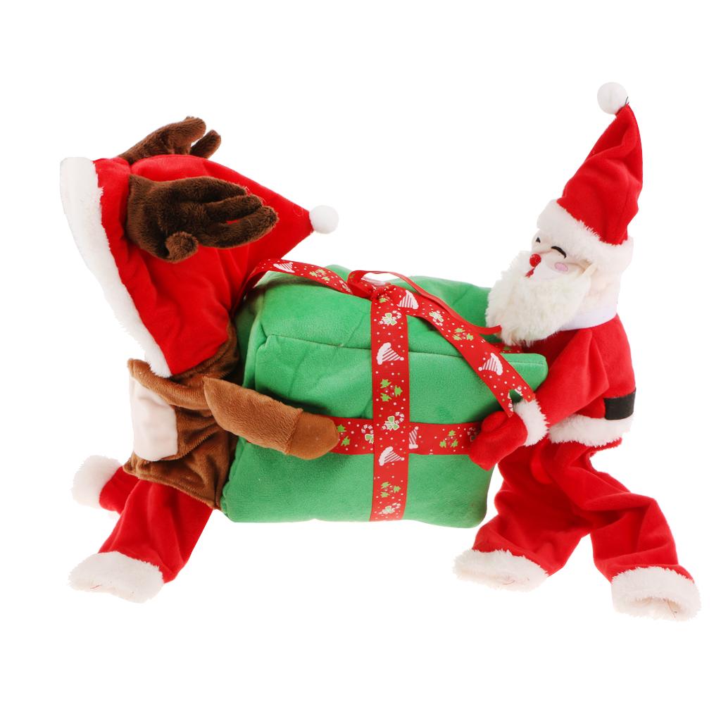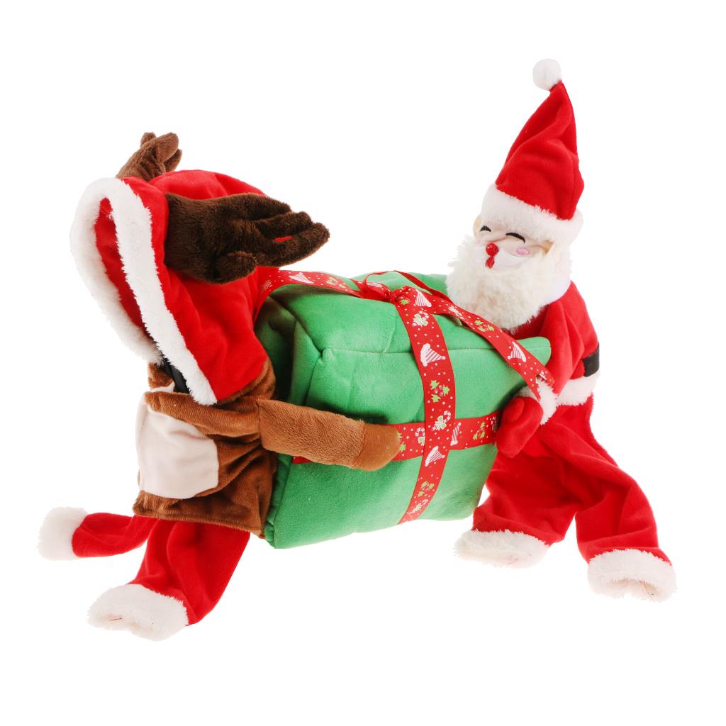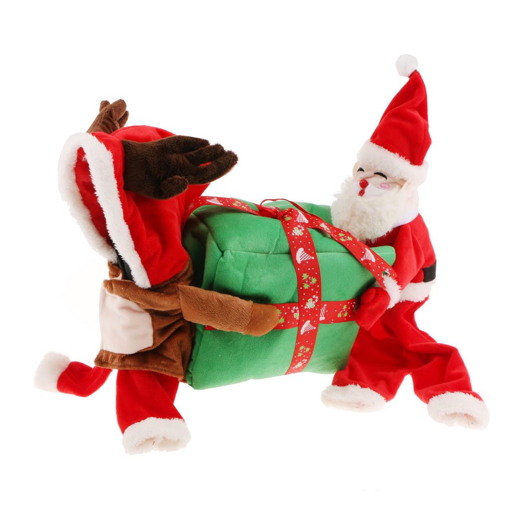 Cute dog christmas deer roles play costume, working with santa to give gifts, very funny;