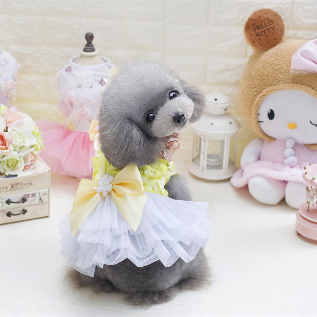 Dog Evening Wedding Dress Formal Clothes Butterfly Bownot Princess Skirt S