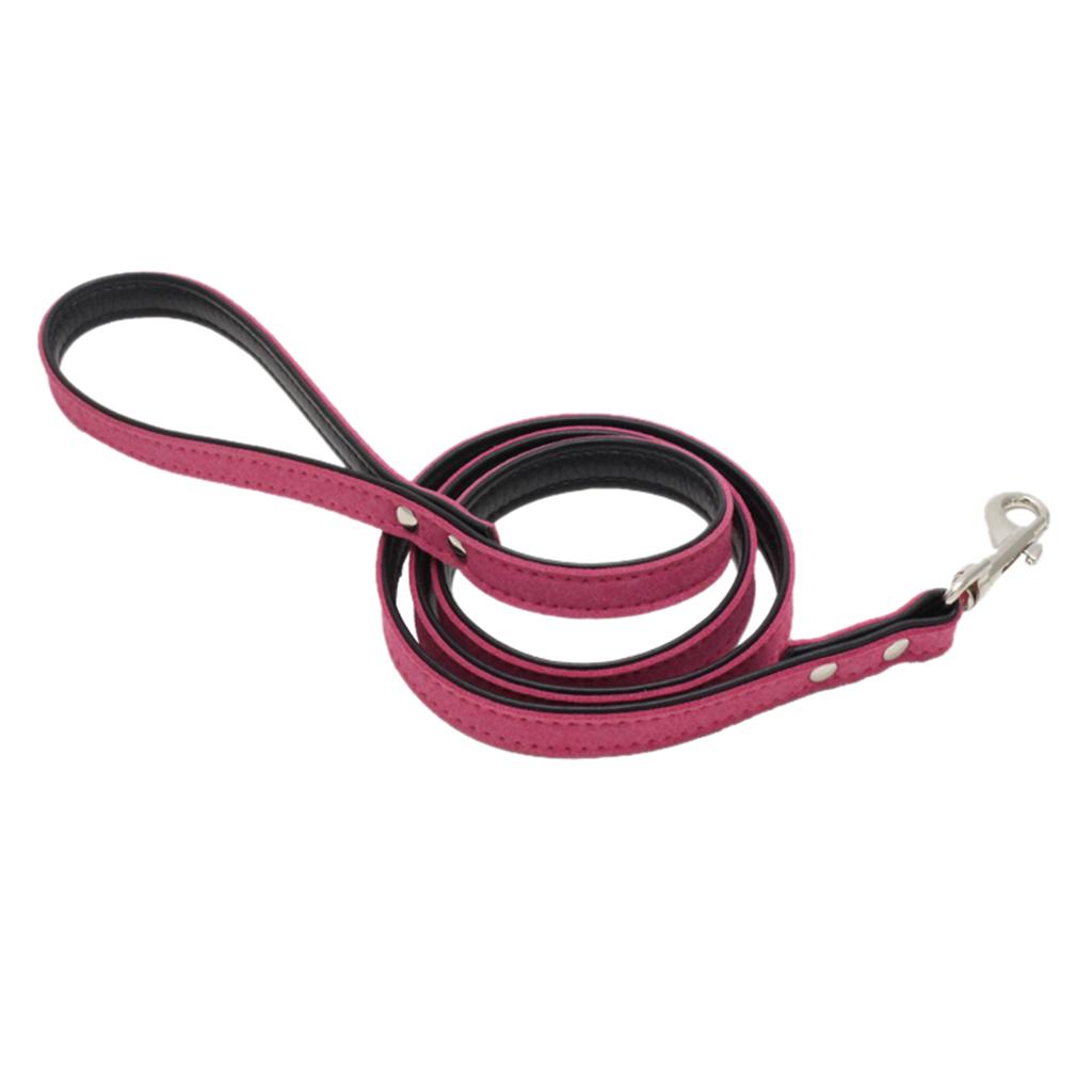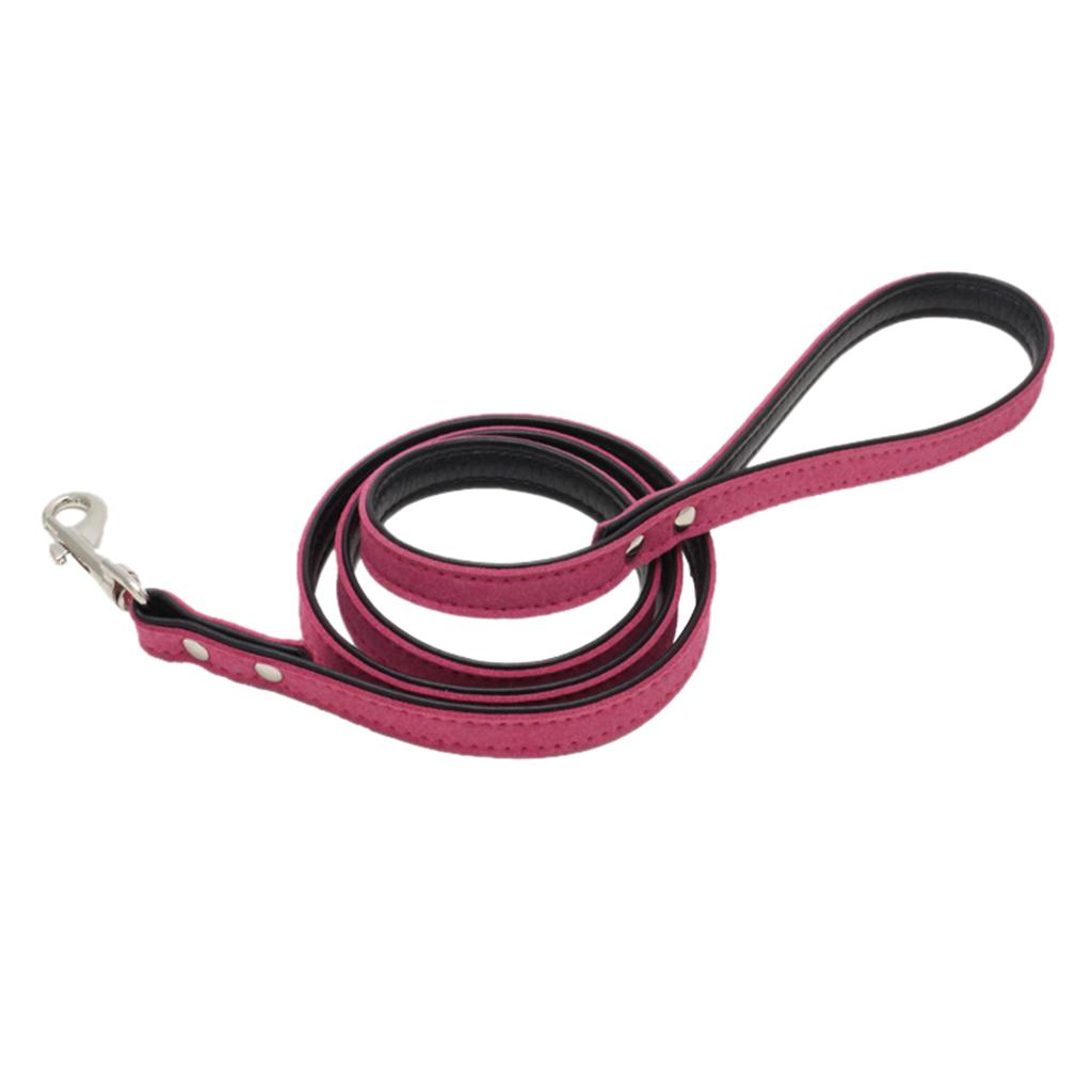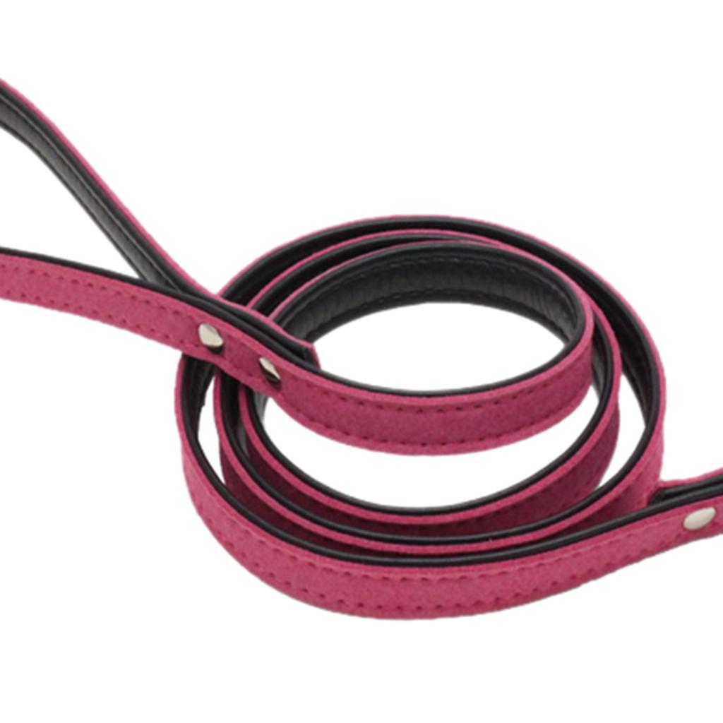 Dog Pet Leash Lead Flocking Leather Walking Soft Firm Comfortable Rose Red