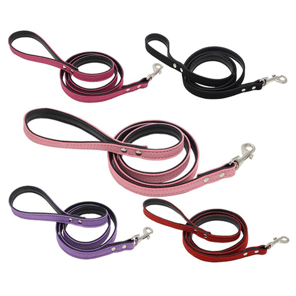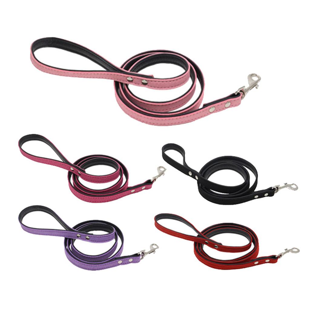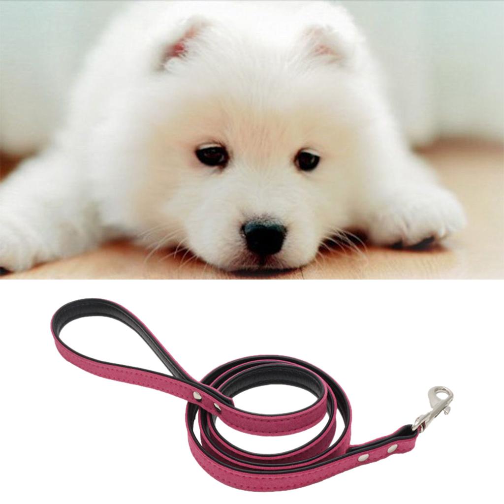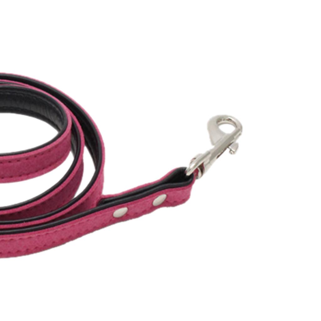 Dog Pet Leash Lead Flocking Leather Walking Soft Firm Comfortable Rose Red