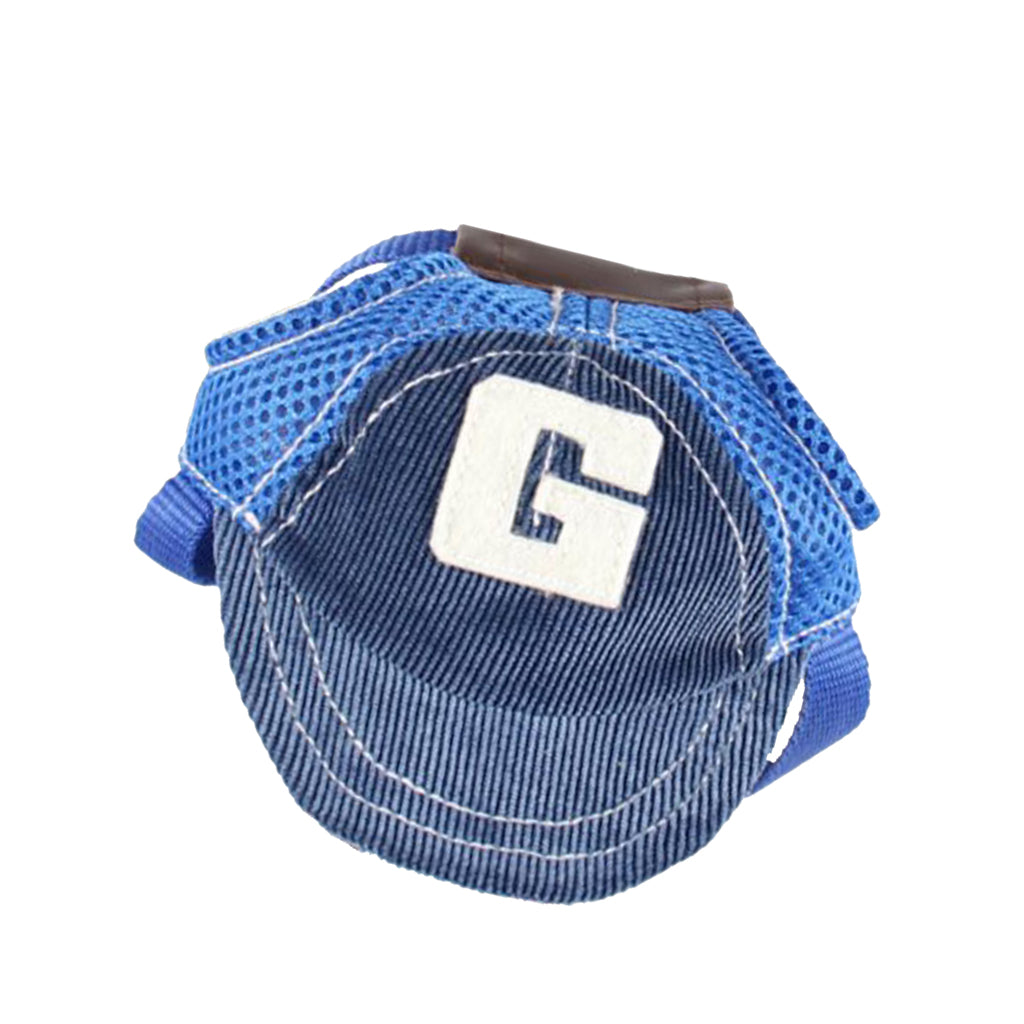 Dog Pet Puppy Head Eyes Heat Protection Canvas Cap Breathable Baseball Sports Hat With Ear Holes Blue S