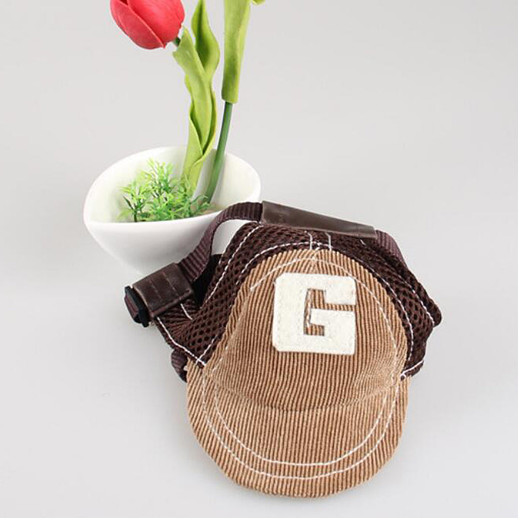 Dog Pet Puppy Summer Canvas Cap Baseball Sports Hat With Ear Holes Coffee L