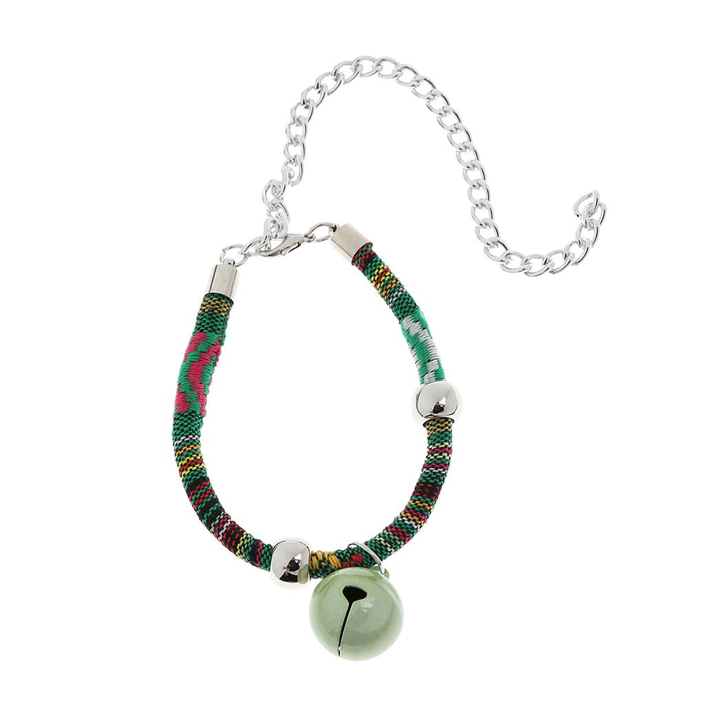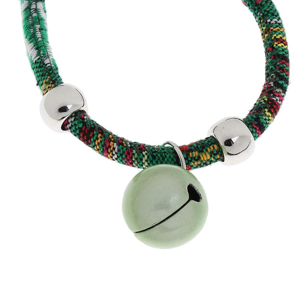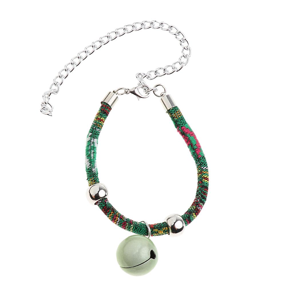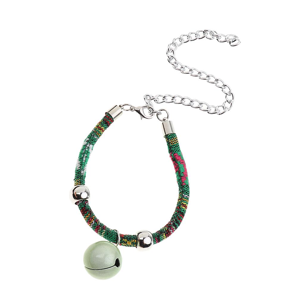 Ethnic Style Dog Puppy Pet Cat Collar Necklace with Bell Decoration Green