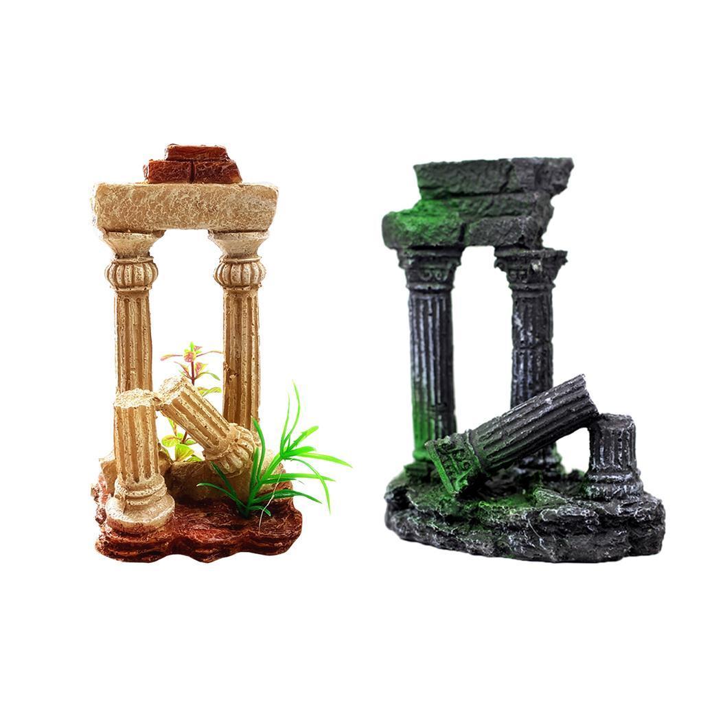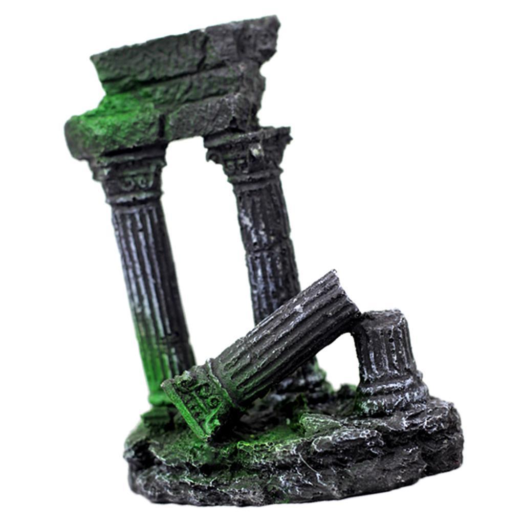 Fake Resin Roman Stone Pillar Column Aquarium Fish Tank Ornament Deco Black