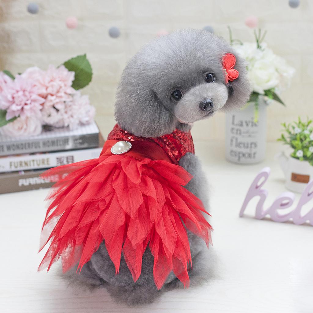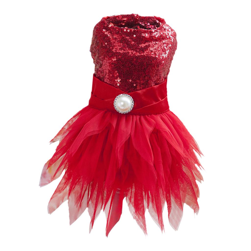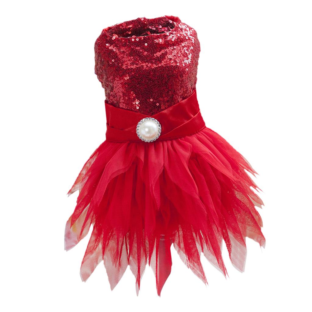 Fashion Sweet Puppy Dog Princess Skirt Pet Dog Tutu Dress Costume Red M