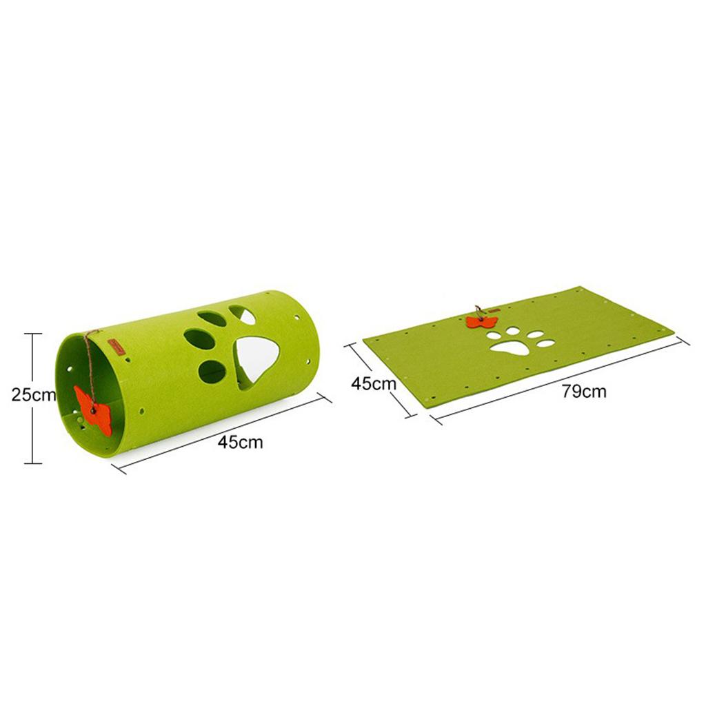 Material: Felt cloth, size when unfolded: approx. 79x45cm/31.1x17.72inch, Tunnel diameter: approx. 25cm/9.84inch, Length: approx. 45cm/17.72inch, rope length: approx. 3meter/9.84ft