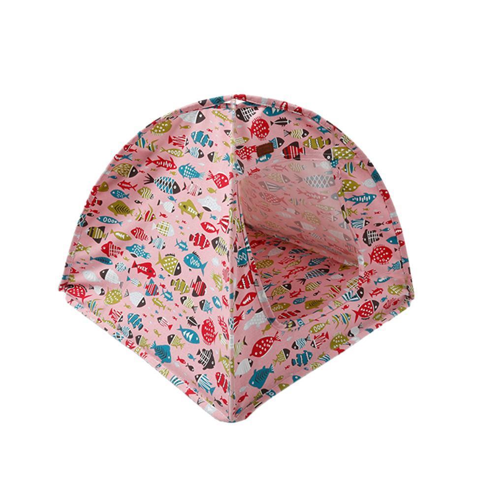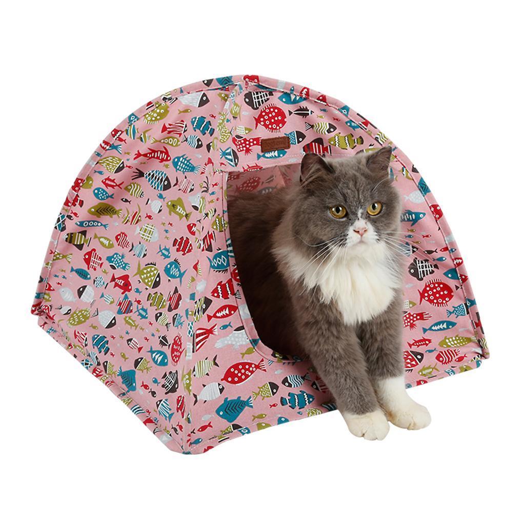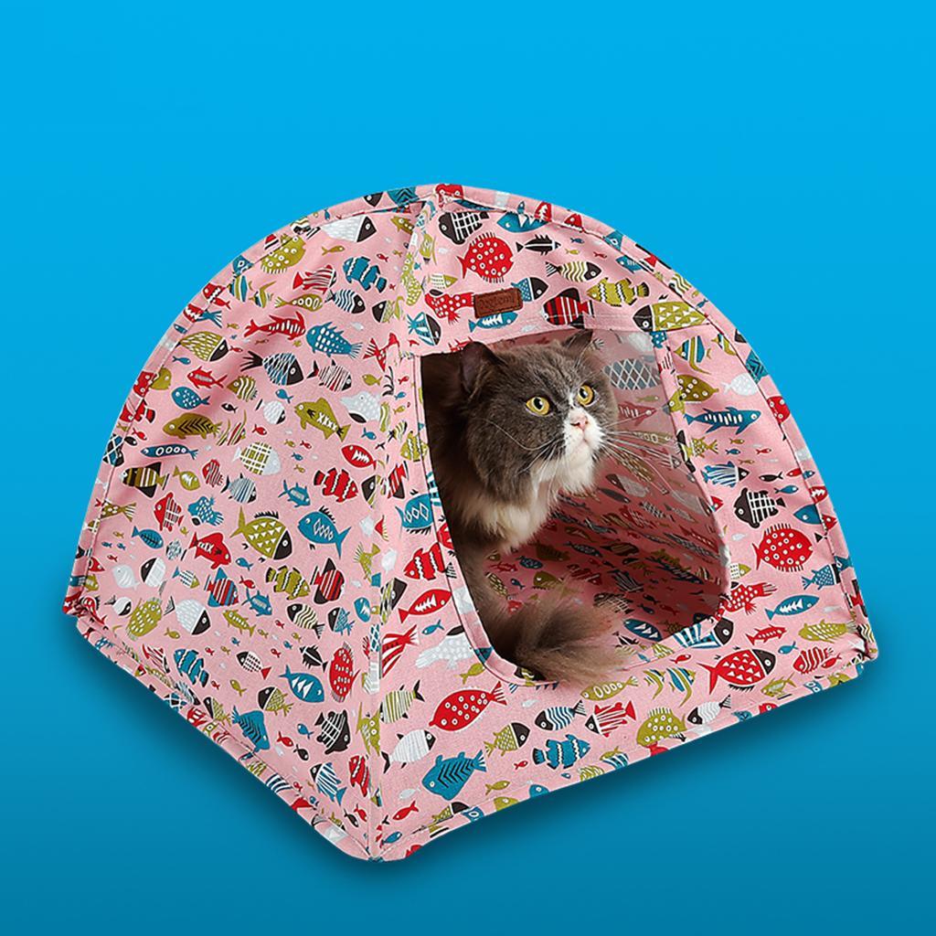 Durable structure and creative fish pattern, this cat tent is good looking and useful. It also foldable, you can take it to travel easily.
