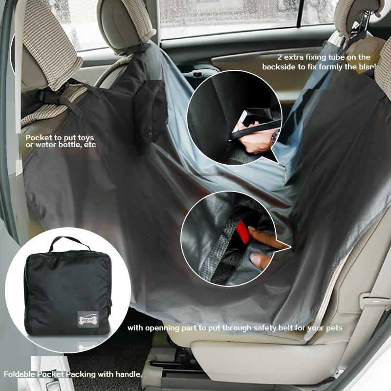 This hammock style cover will protect your car's upholstery and also your dog when you are driving. The protective waterproof blanket attaches in minutes with easy buckle fixings to your headrest or seat belt fasteners. When braking the blanket will stop your pet from sliding forward into the foot-well. The dog cradle covers the whole of the back seat, no more dirty or damaged seats, no more stubborn dog hair or doggy smells to embarrass passengers, just a large comfy area for your pet to lie on.