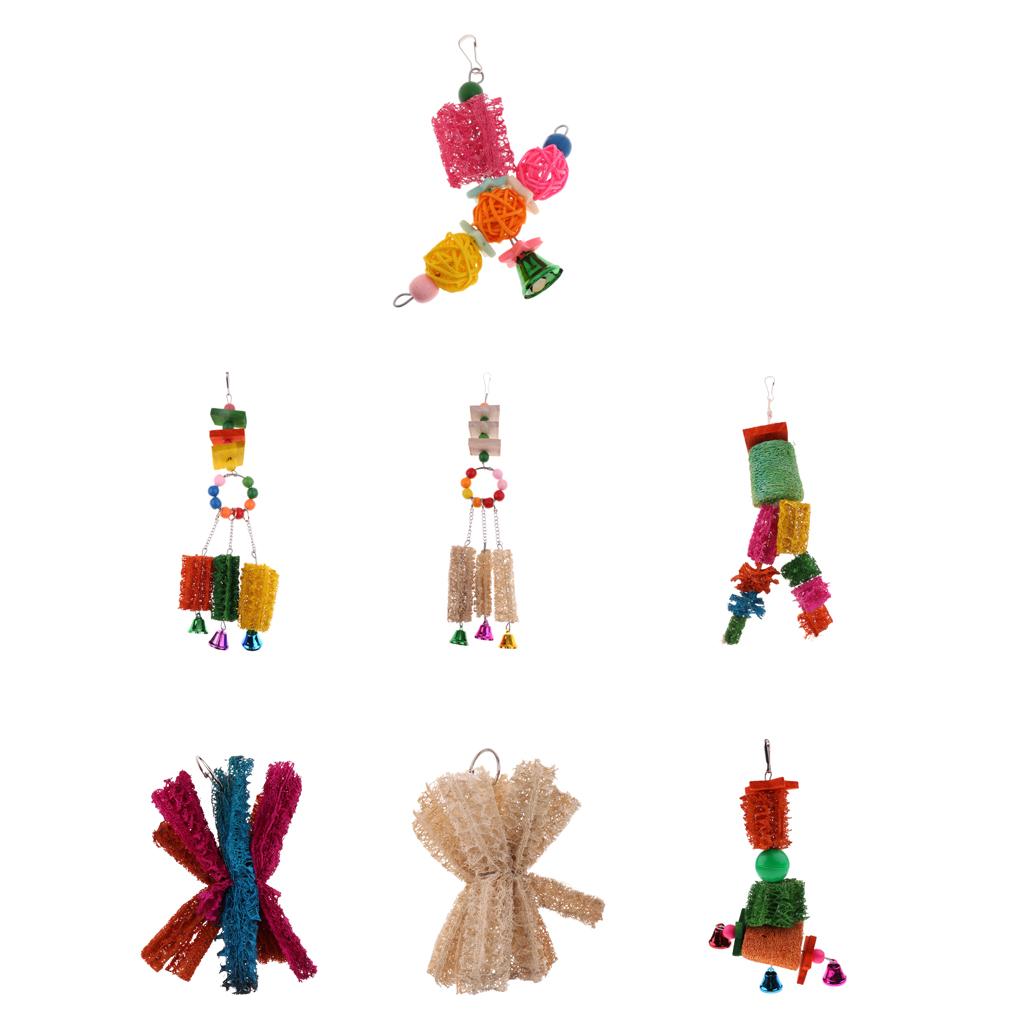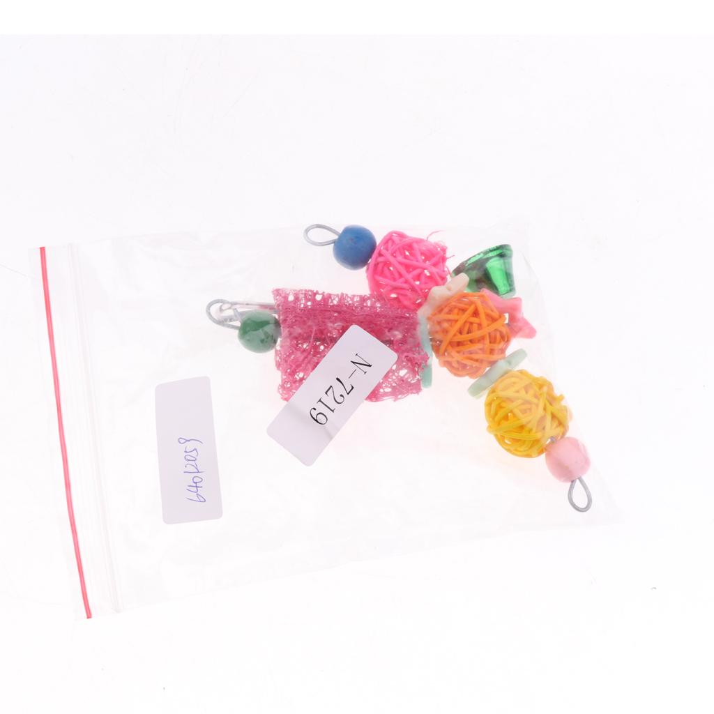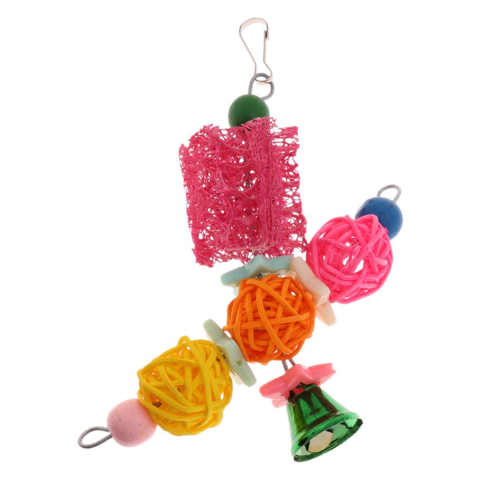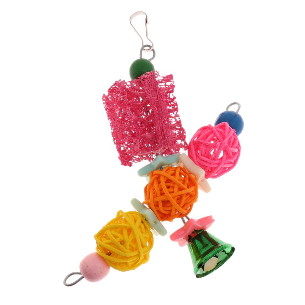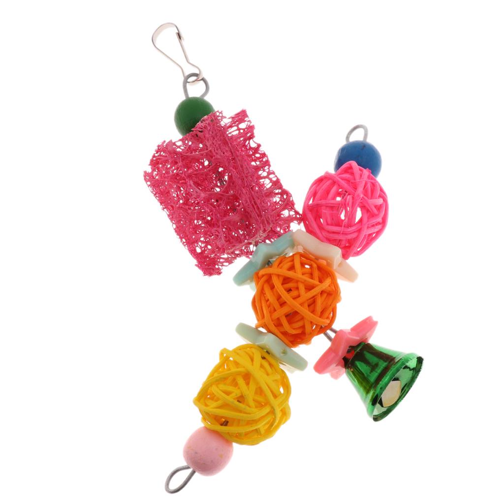 Funny Pet Bird Loofah Toys Parrot Cage Hanging Swing Chew Toy With Bell #1