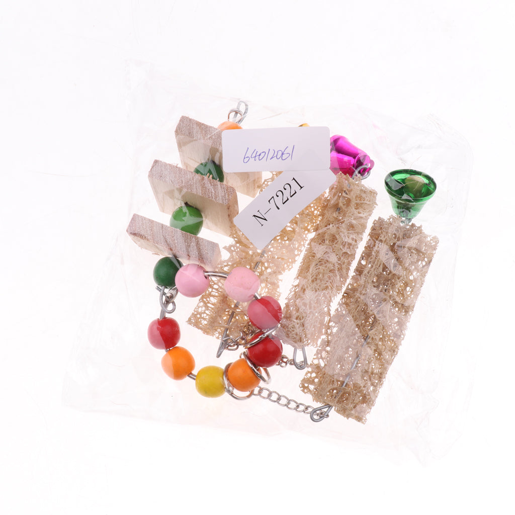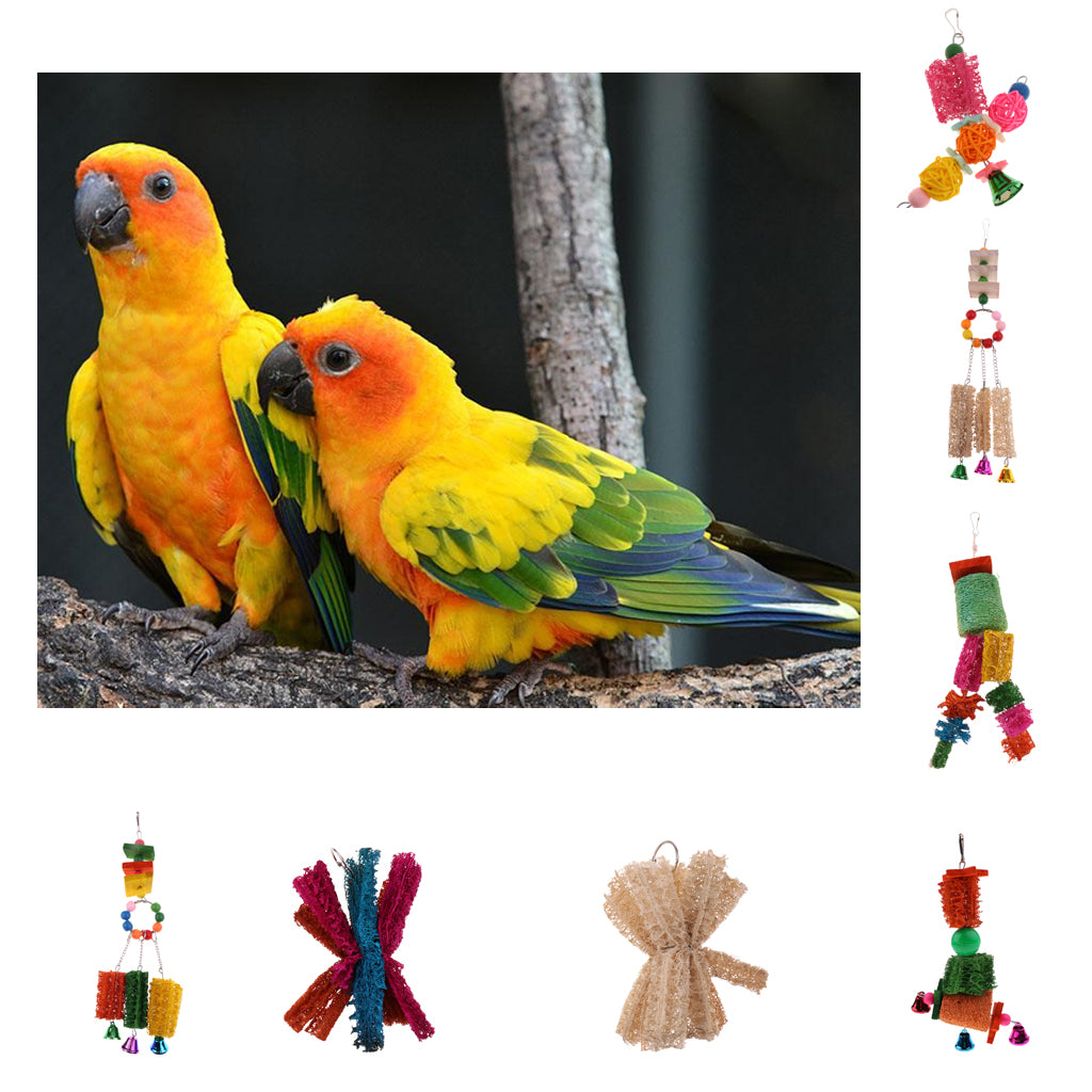 Funny Pet Bird Loofah Toys Parrot Cage Hanging Swing Chew Toy With Bell #3