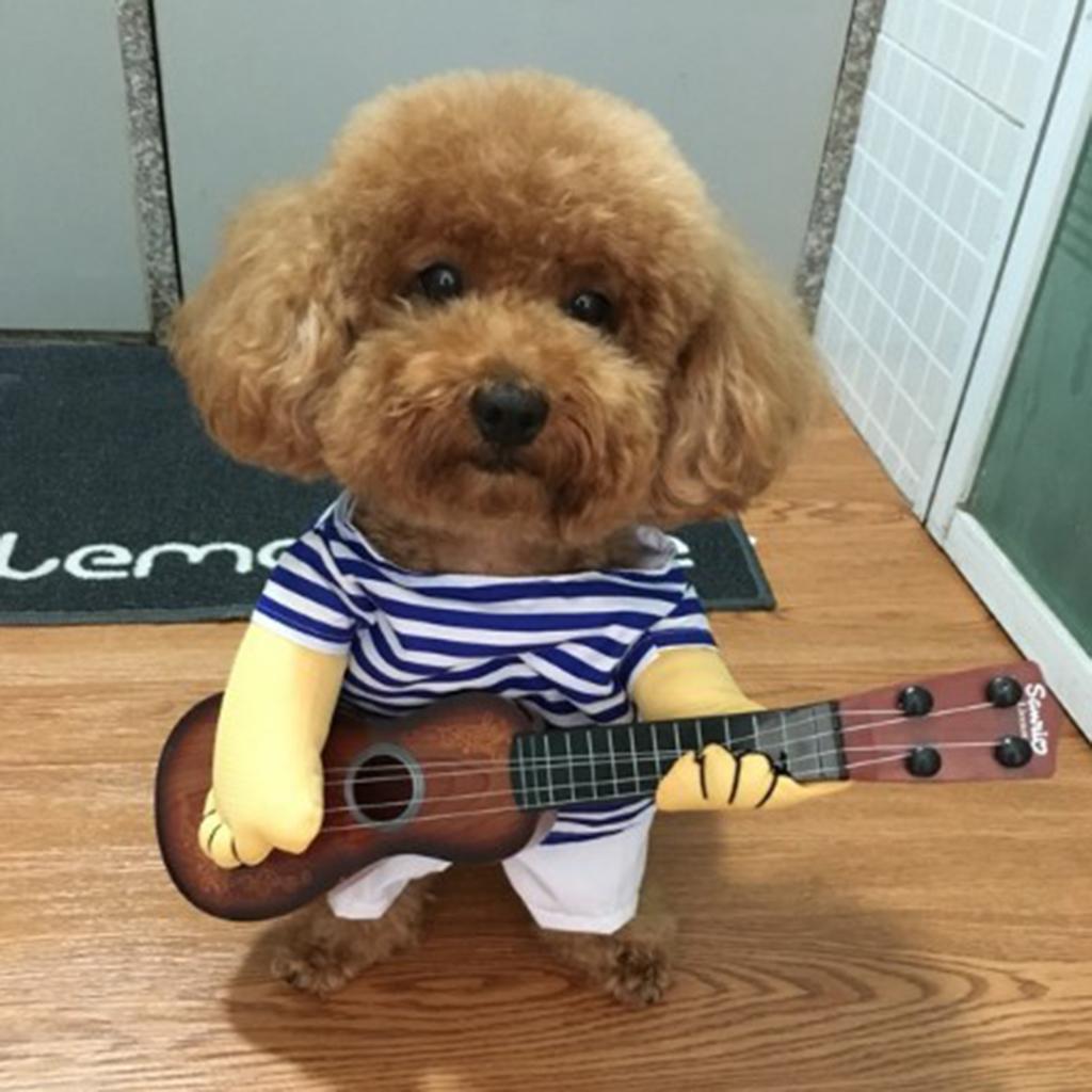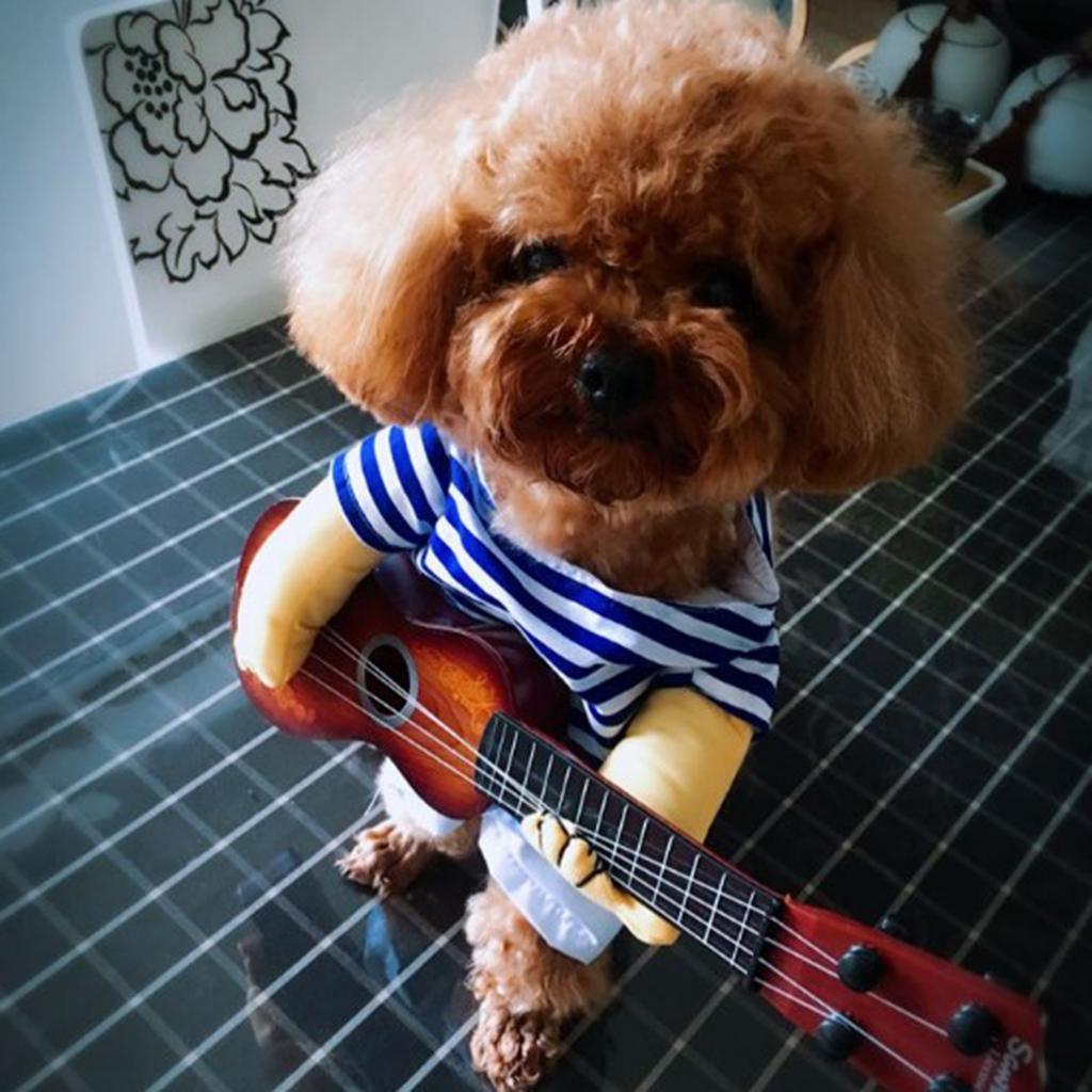 Dog playing guitar costume, halloween and christmas fun clothes, cute for small dog;
