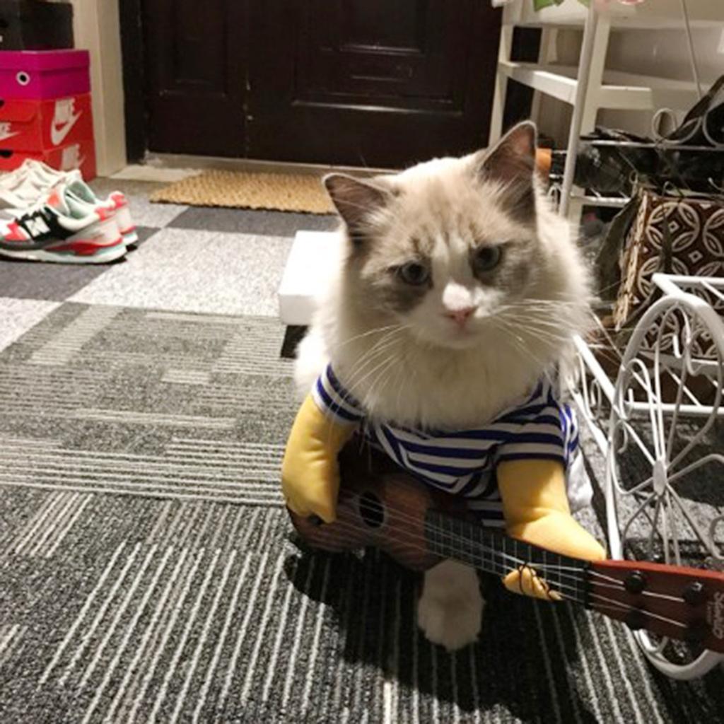 Guitar can makes sound, perfect for your pet cosplaying a super star;