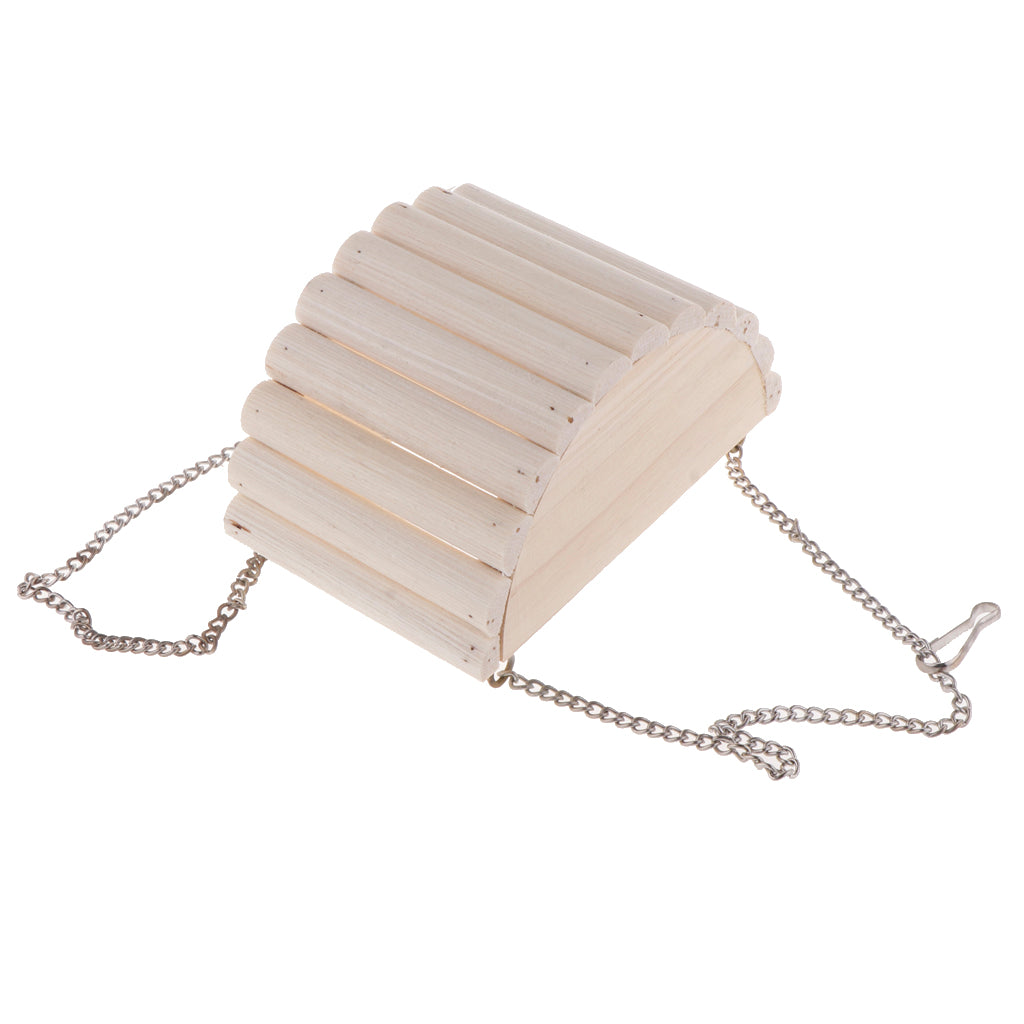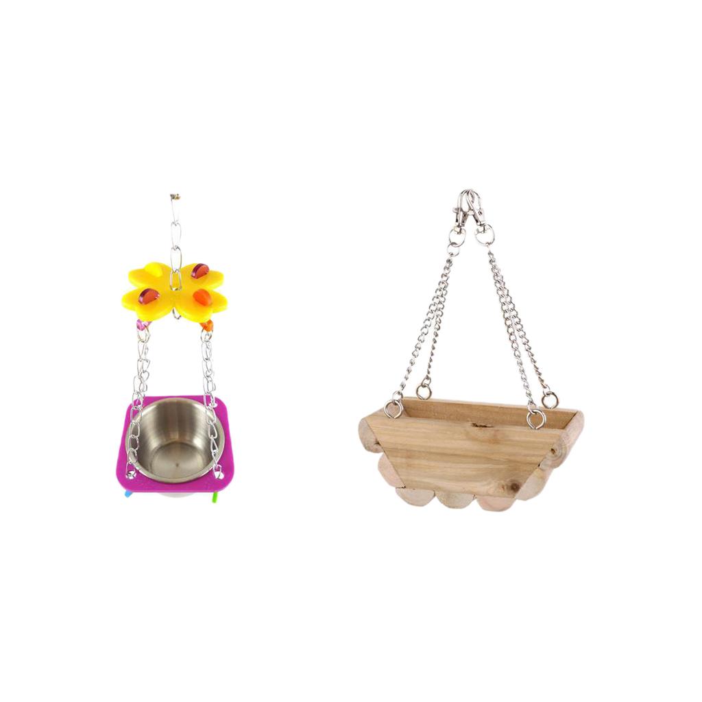 Muti-purppse design colorful feeder--with the stainless steel cup it is a food or water tray for your pets; when you take off the cup, it becomes a colorful swing toy. Wooden boat is also a great toy for your little friends to play and climb.