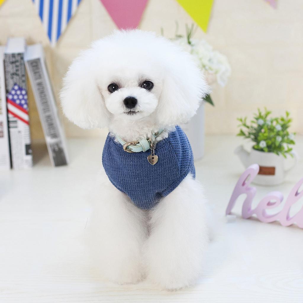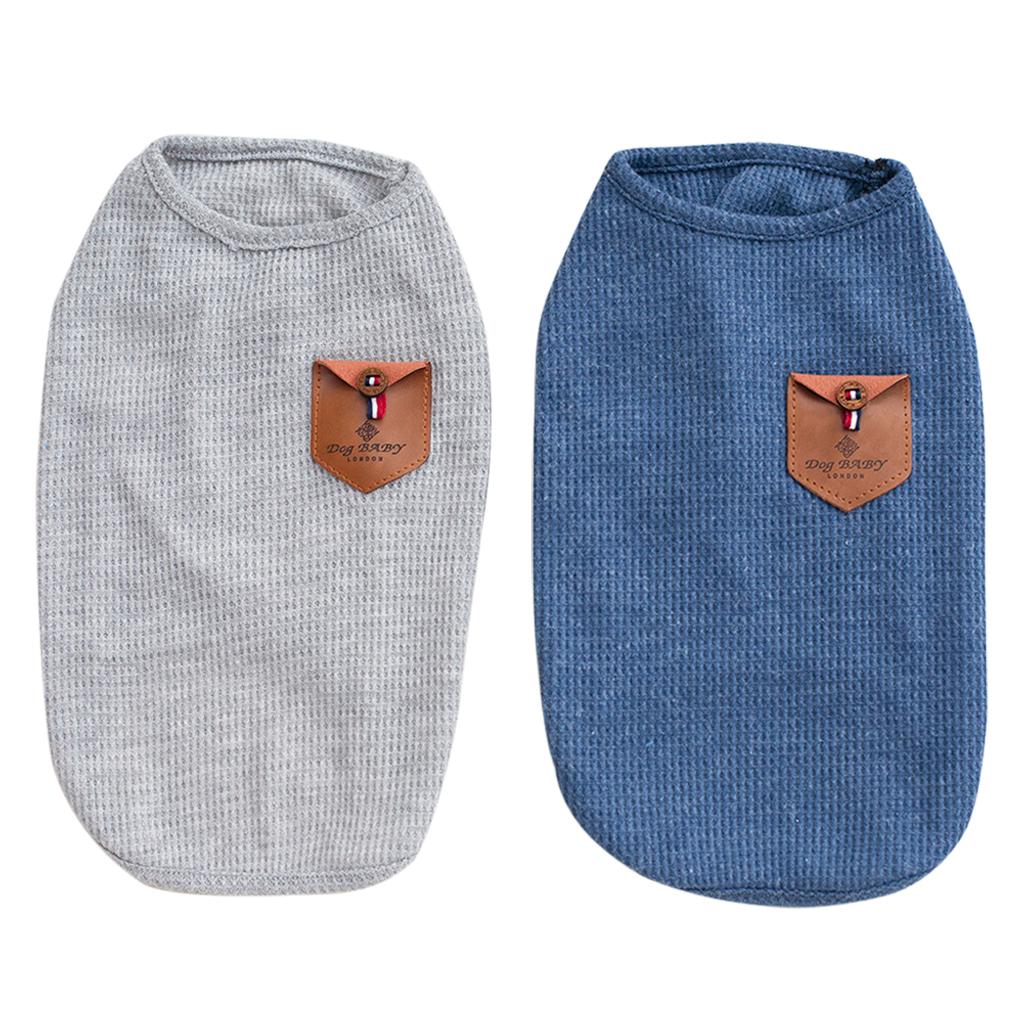 Korean Style Pet Puppy Dog Cat Pet Clothes Dress Vest T Shirt Blue L