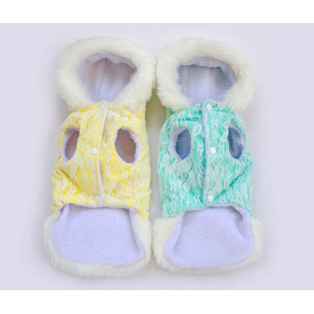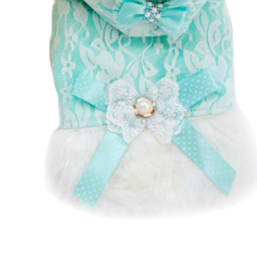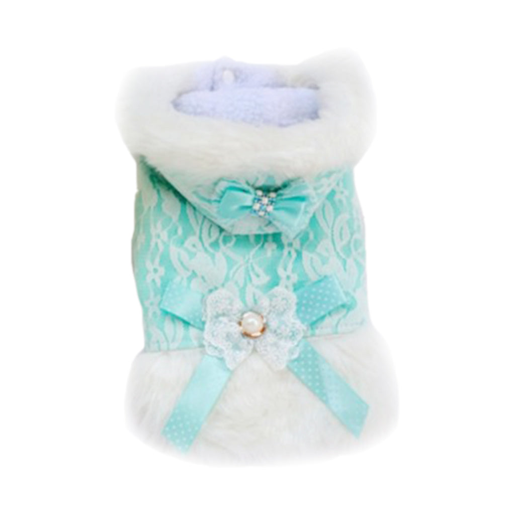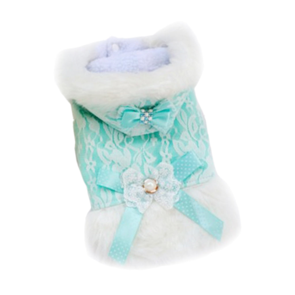 Lace Pet Puppy Vest Outfit Dog Hoodie Warm Plush Clothes Bowtie L 002