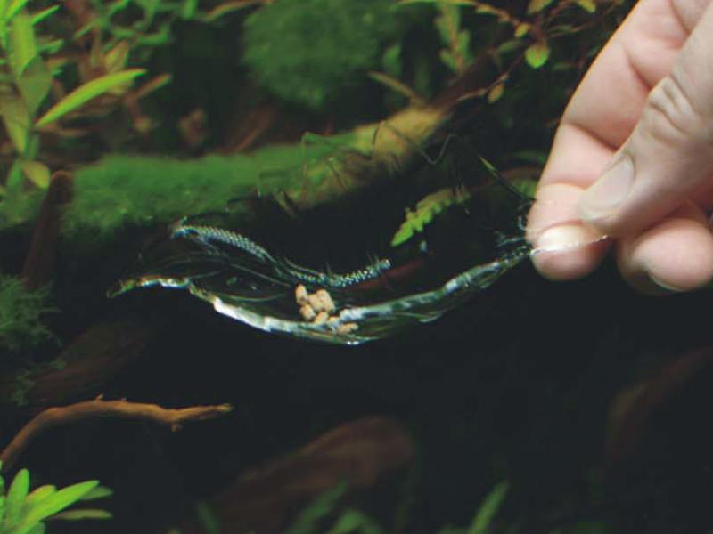 An acrylic tray for placing food to prevent messing up with the gravel. It can be used to contain pellet shrimp food or even tubifex worms for smaller fishes.