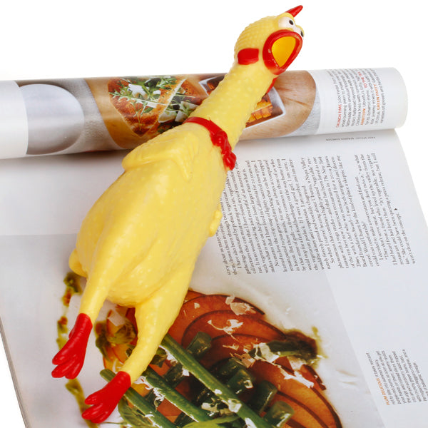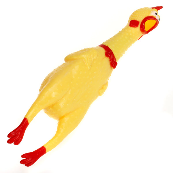 Lifelike Plastic Squeezy Shrilling Chicken Dog Cat Entertainment Fun Play Toy Yellow + Red 12 x 2.8 x 3.3 inch