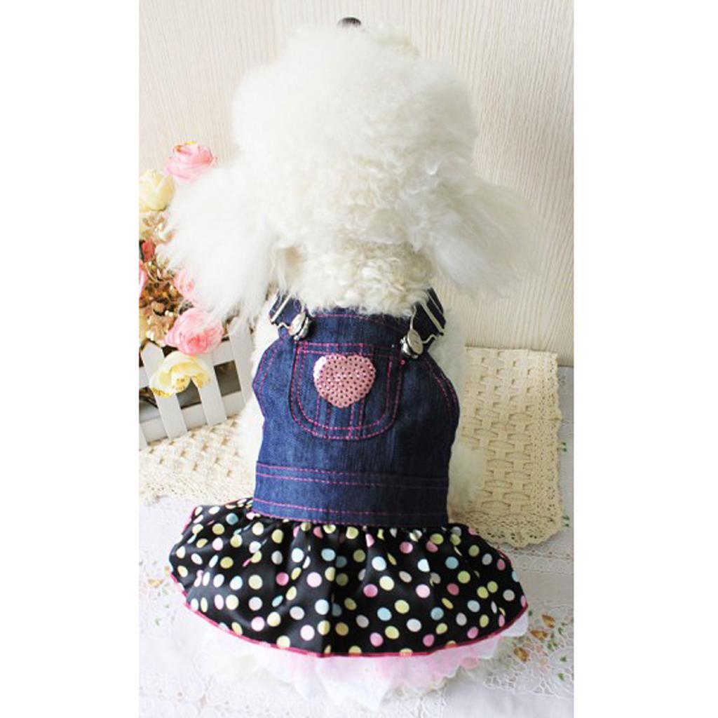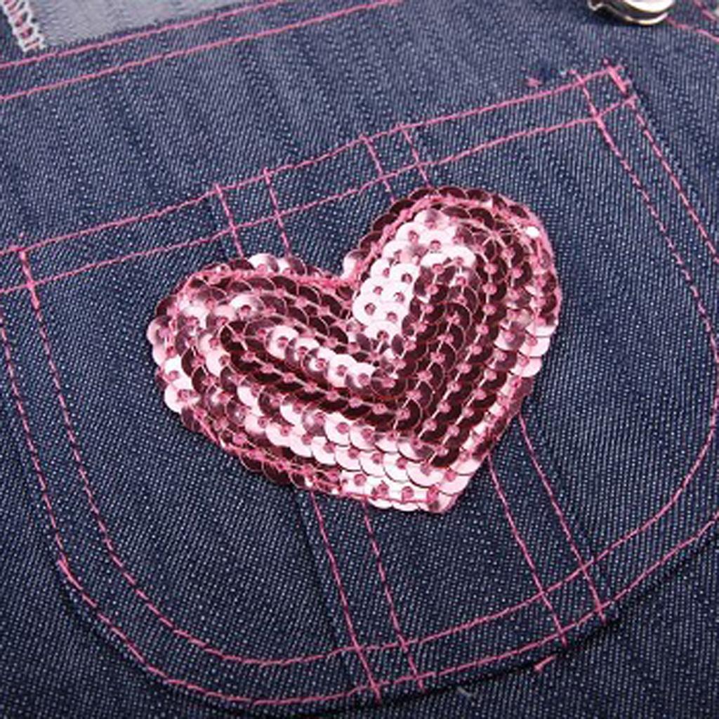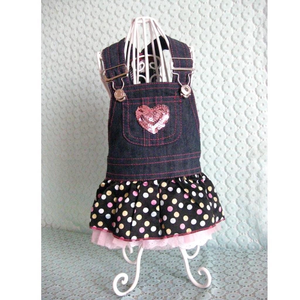 Lightweight Comfortable Adorable Pink Heart Sequin Polka Dot Dog Puppy Blue Jeans Overall Dress Pet Supplies XL