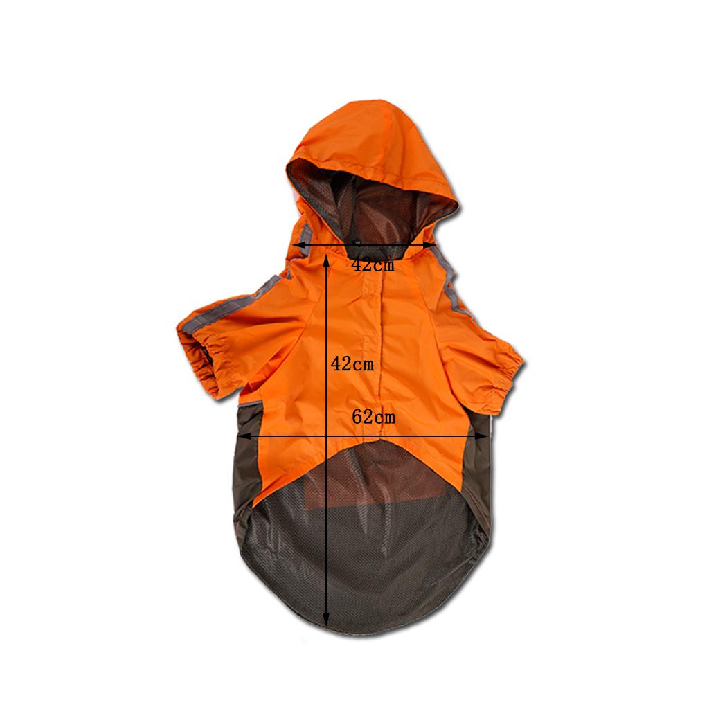 A dog raincoat is not only just a cute rainy-day fashion accessory for your pup, it helps keep your pet dry and comfortable in wet weather. Featuring three buttons at back, easy pull-over style, this dog slicker makes it a perfect choice for wearing from all seasons.