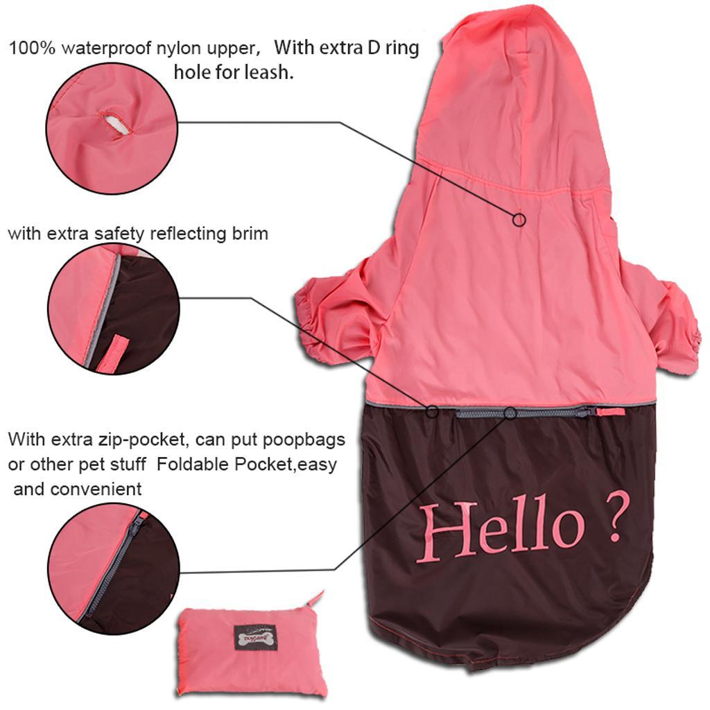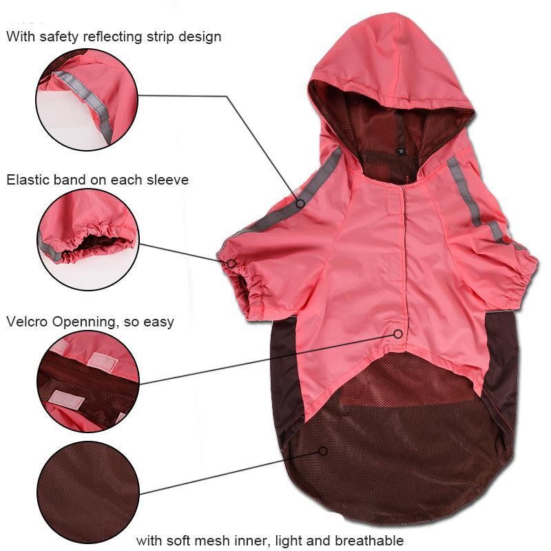 A dog raincoat is not only just a cute rainy-day fashion accessory for your pup, it helps keep your pet dry and comfortable in wet weather. Featuring three buttons at back, easy pull-over style, this dog slicker makes it a perfect choice for wearing from all seasons.