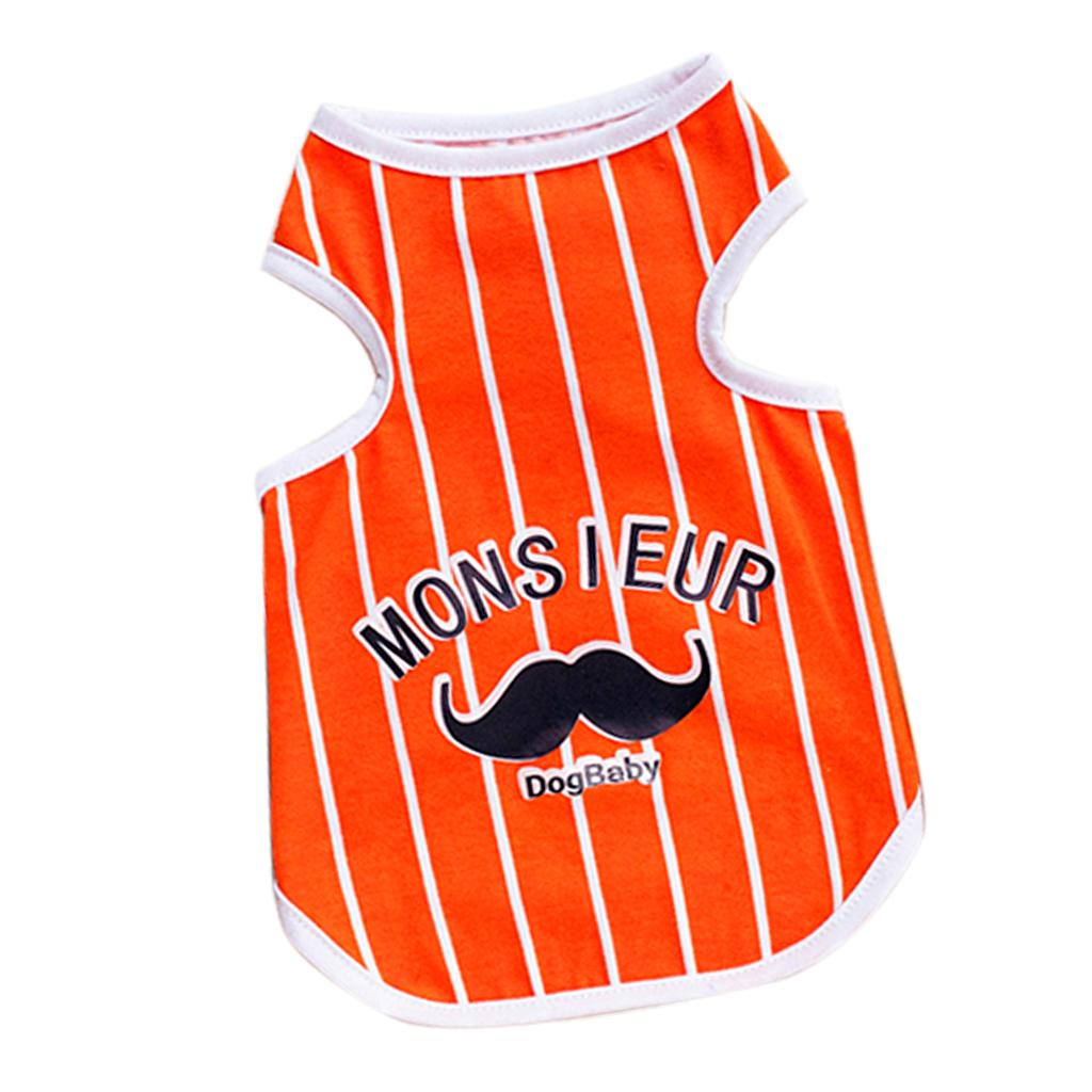 Moustache Pattern Pet Puppy Dog Cat Pet Clothes Dress Vest T Shirt Orange L