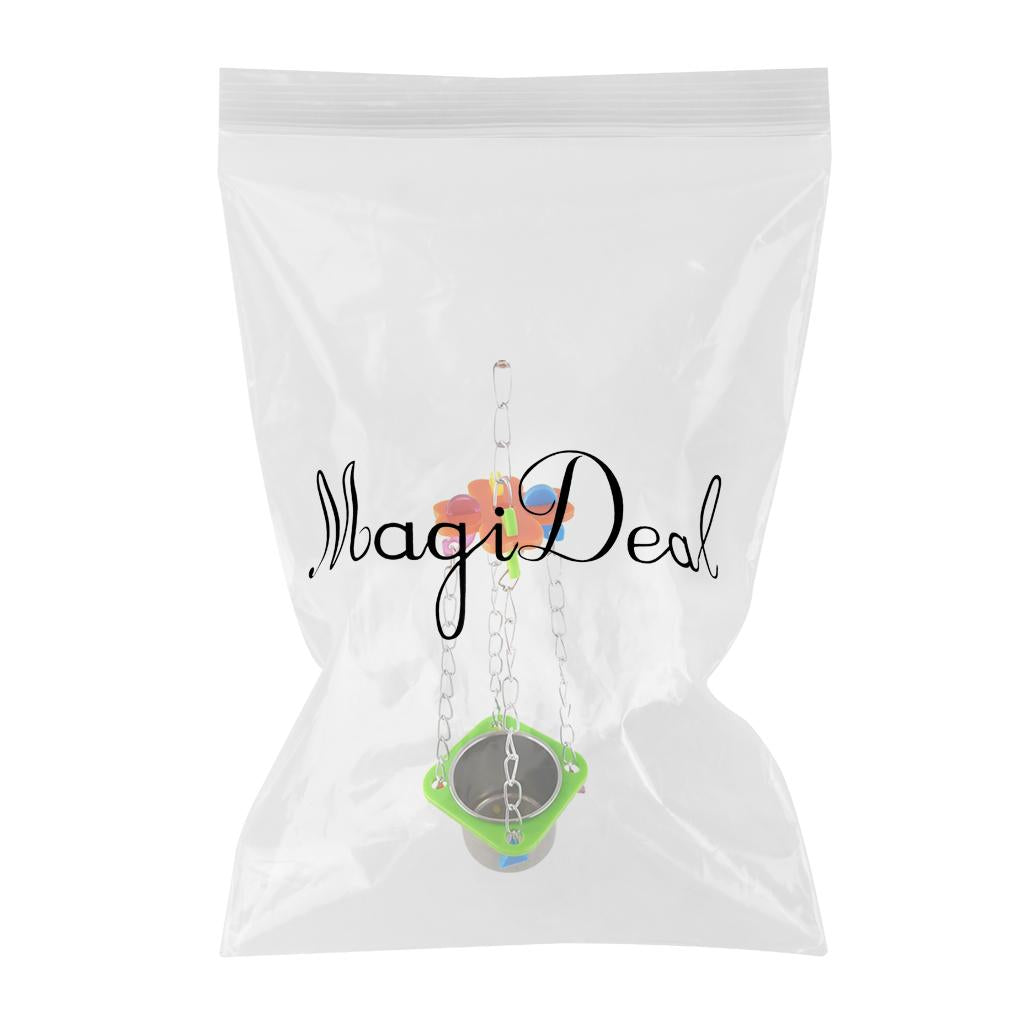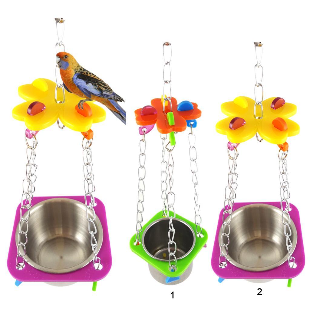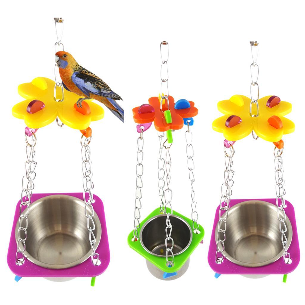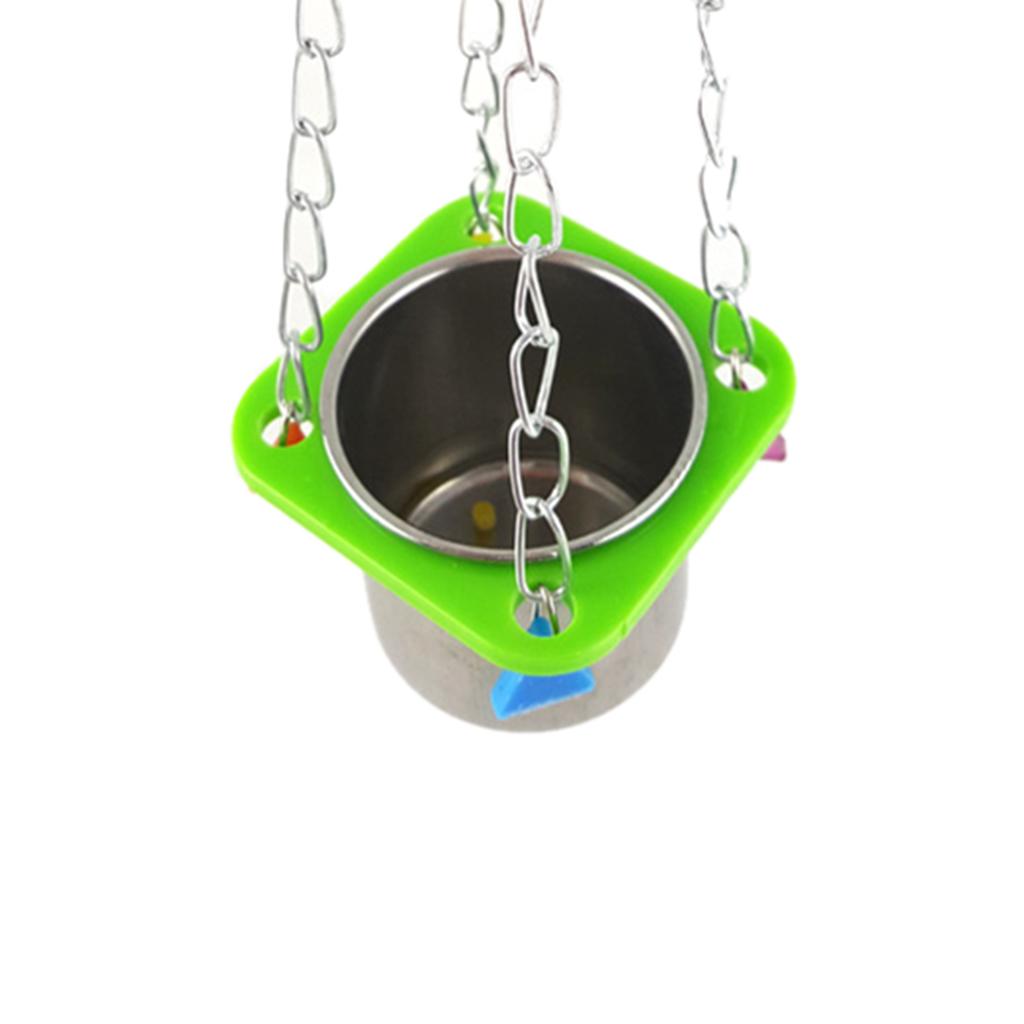 Muti-purppse design--with the stainless steel cup it is a food or water tray for your pets; when you take off the cup, it becomes a colorful swing toy.