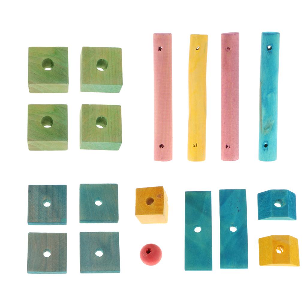DIY fun toy, several distinctive shapes and vibrant colors blocks can be knotted with cotton rope as a new bird smart toy;